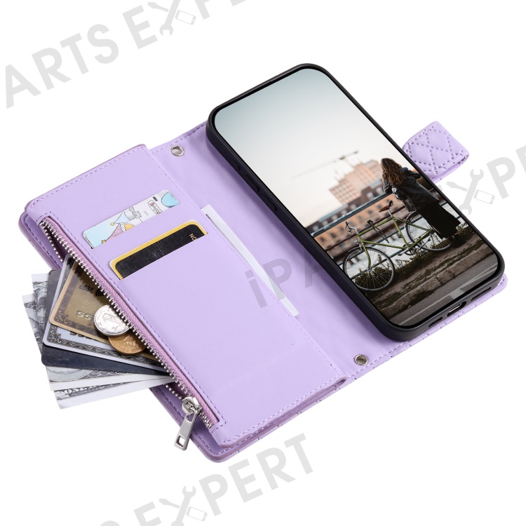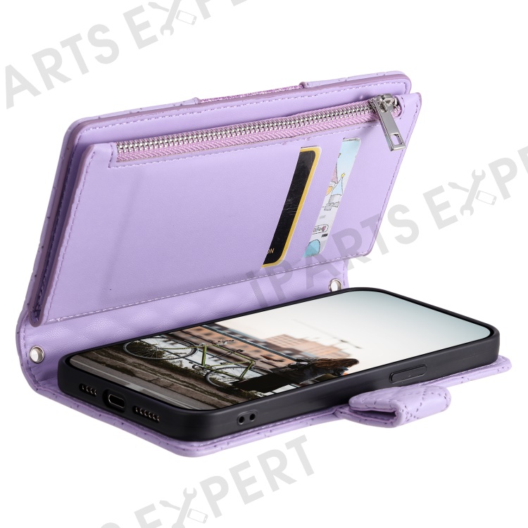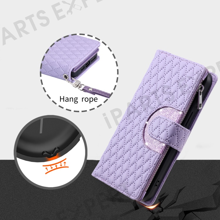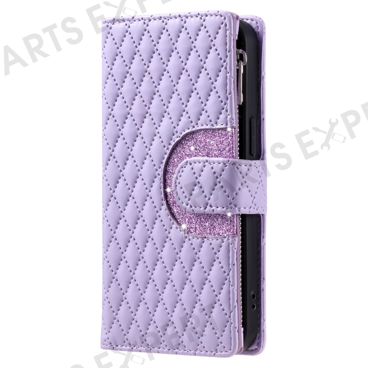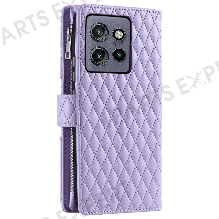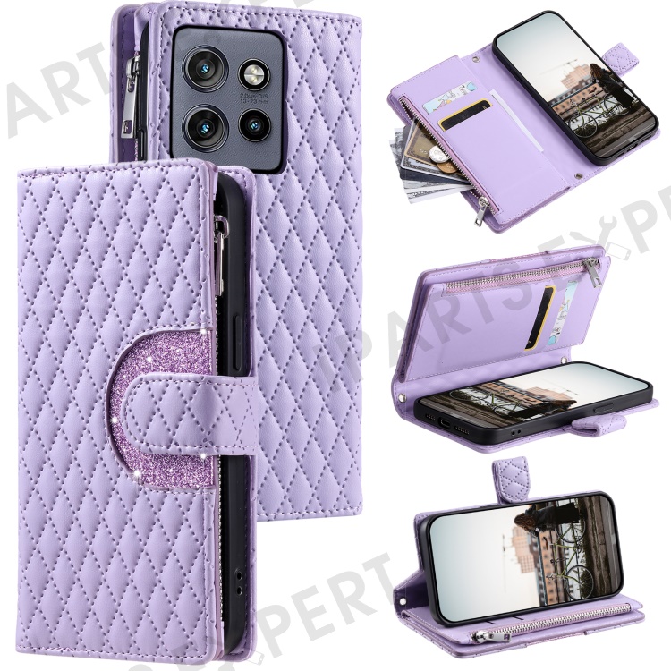 Style 012 for Motorola Edge 50 Neo 5G / Moto S50 5G / Thinkphone 25 5G Case Zipper Pocket Glitter Leather Phone Cover - Purple
