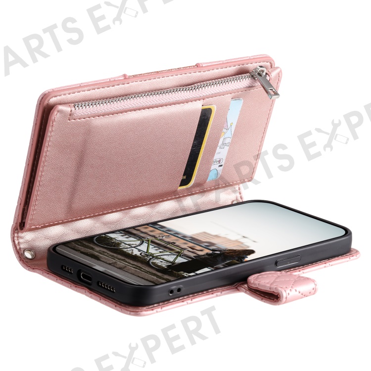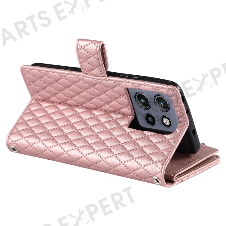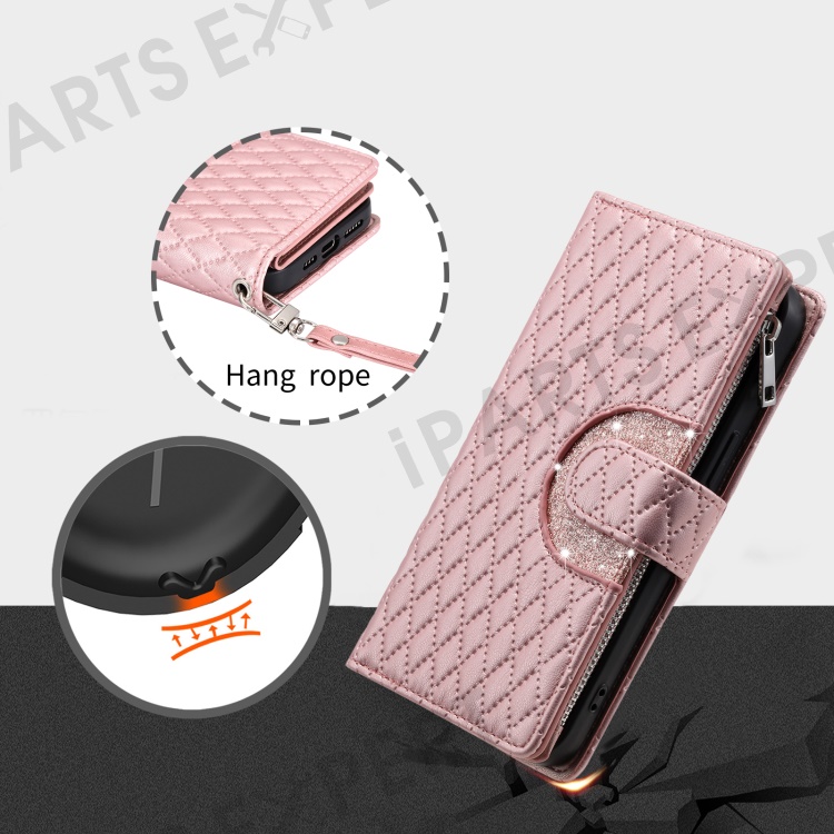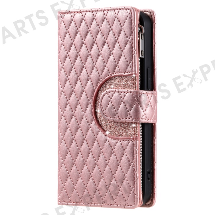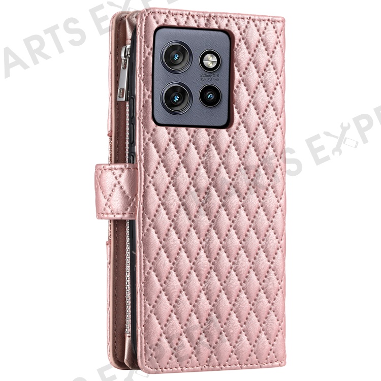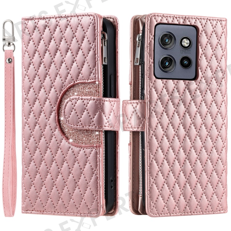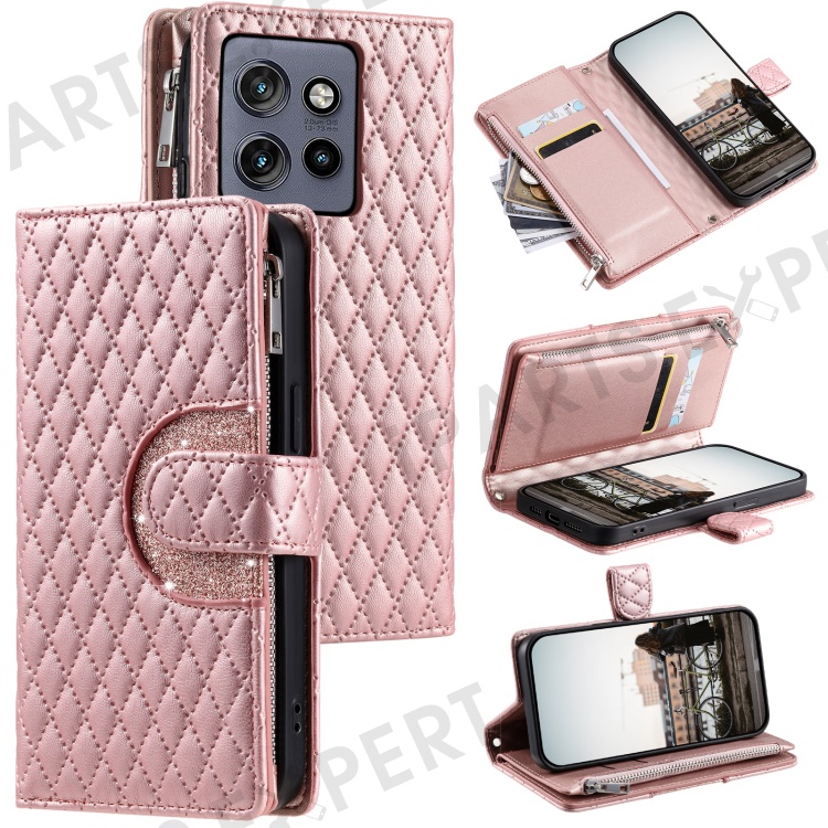 Style 012 for Motorola Edge 50 Neo 5G / Moto S50 5G / Thinkphone 25 5G Case Zipper Pocket Glitter Leather Phone Cover - Rose Gold