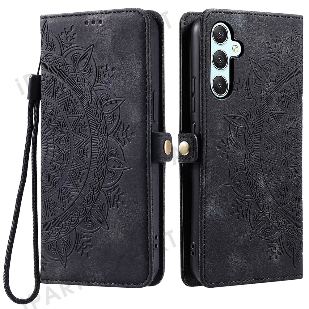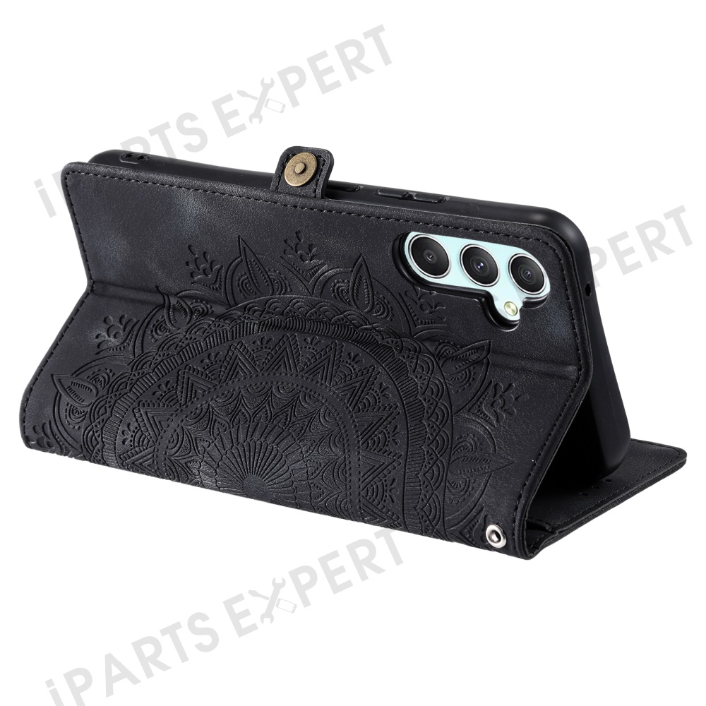 Style 016 For Samsung Galaxy A26 5G Case Skin Feel Totem Imprinted Wallet Leather Phone Cover - Black