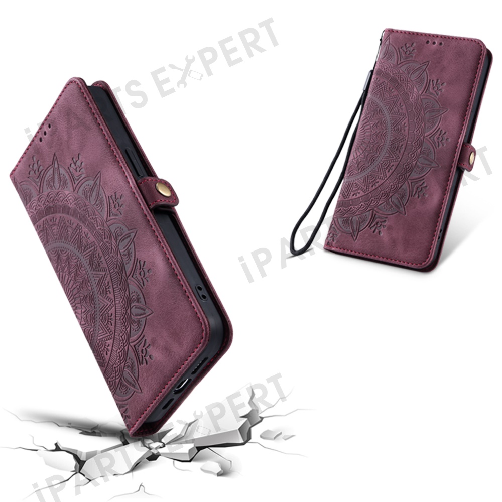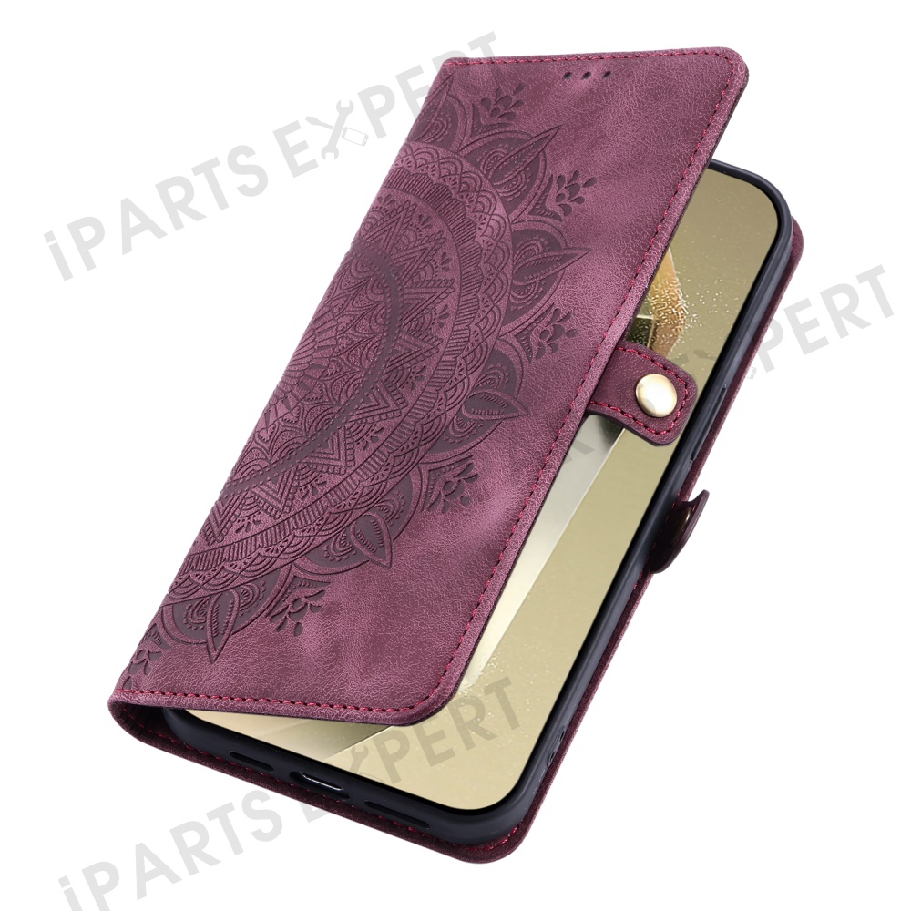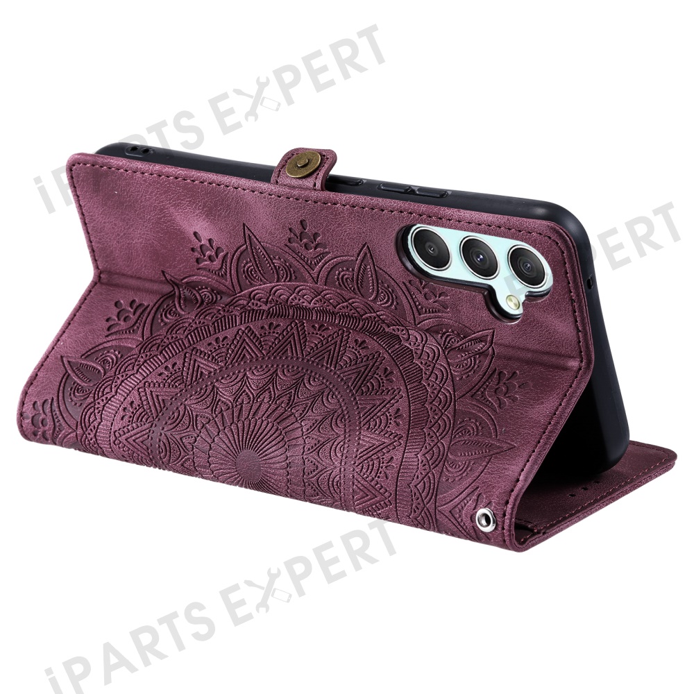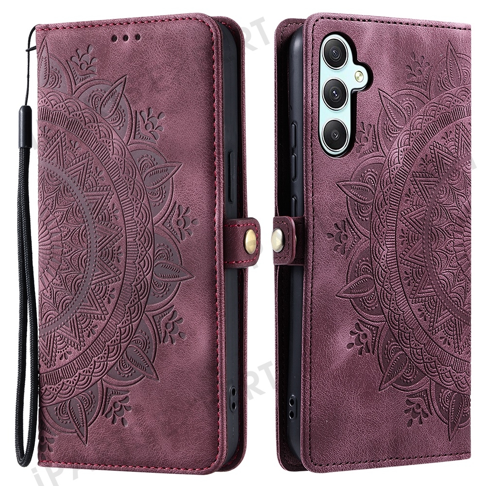 Style 016 For Samsung Galaxy A26 5G Case Skin Feel Totem Imprinted Wallet Leather Phone Cover - Wine Red