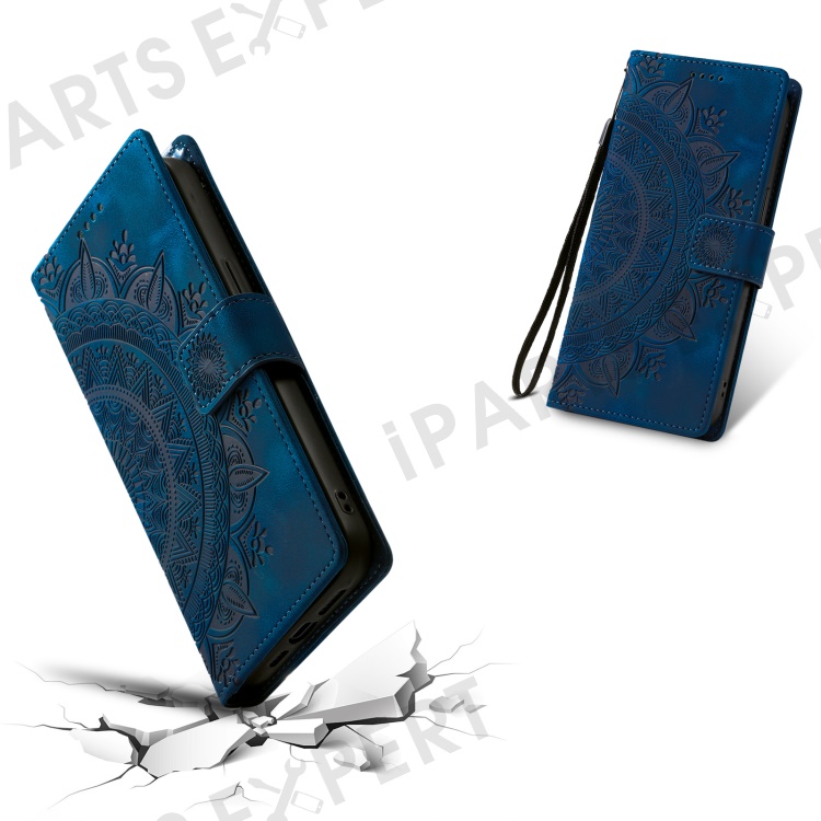 Style 018 For Samsung Galaxy S24 Case Imprinted Totem Skin Feel Wallet Leather Phone Cover - Blue