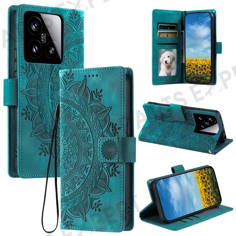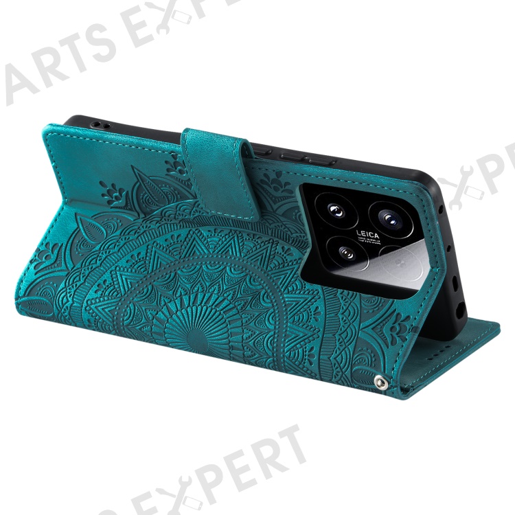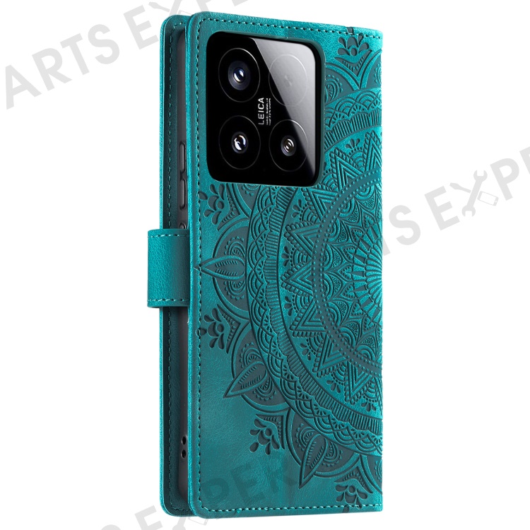 Style 018 For Xiaomi 15 Case Imprinted Totem Skin Feel Wallet Leather Phone Cover - Mint Green