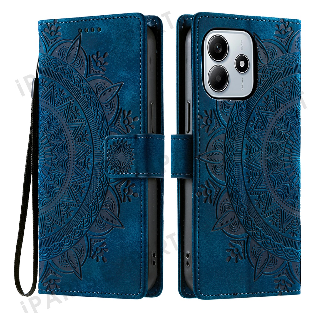 Style 018 For Xiaomi Redmi Note 14 5G Case Imprinted Totem Skin Feel Wallet Leather Phone Cover - Blue