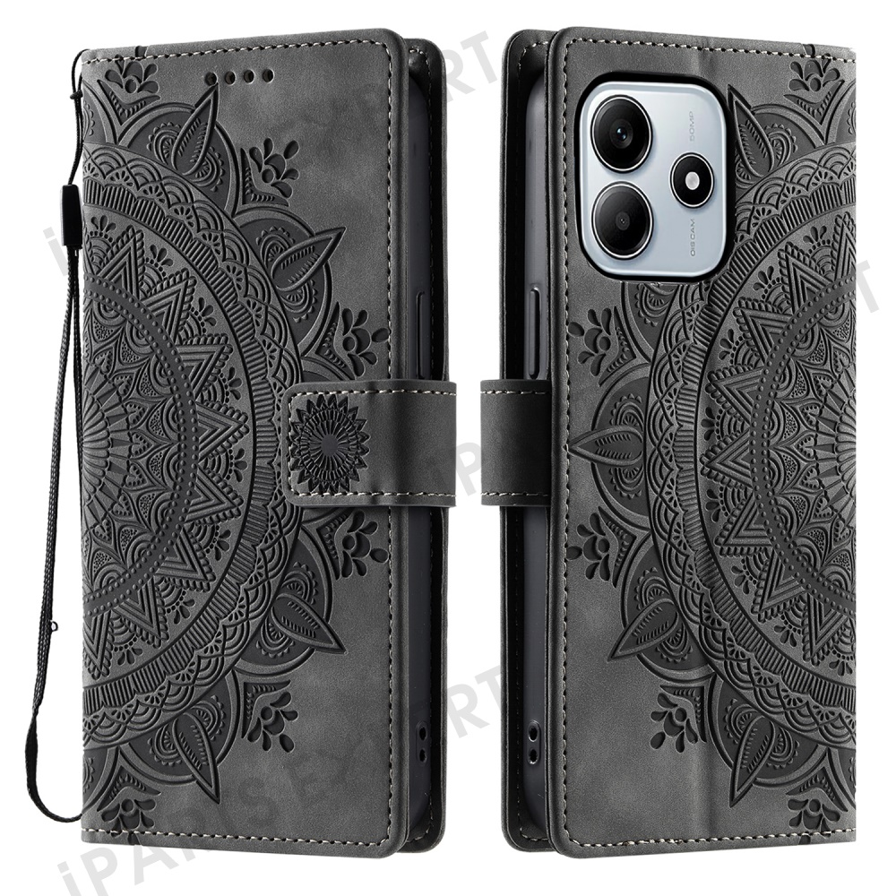Style 018 For Xiaomi Redmi Note 14 5G Case Imprinted Totem Skin Feel Wallet Leather Phone Cover - Grey