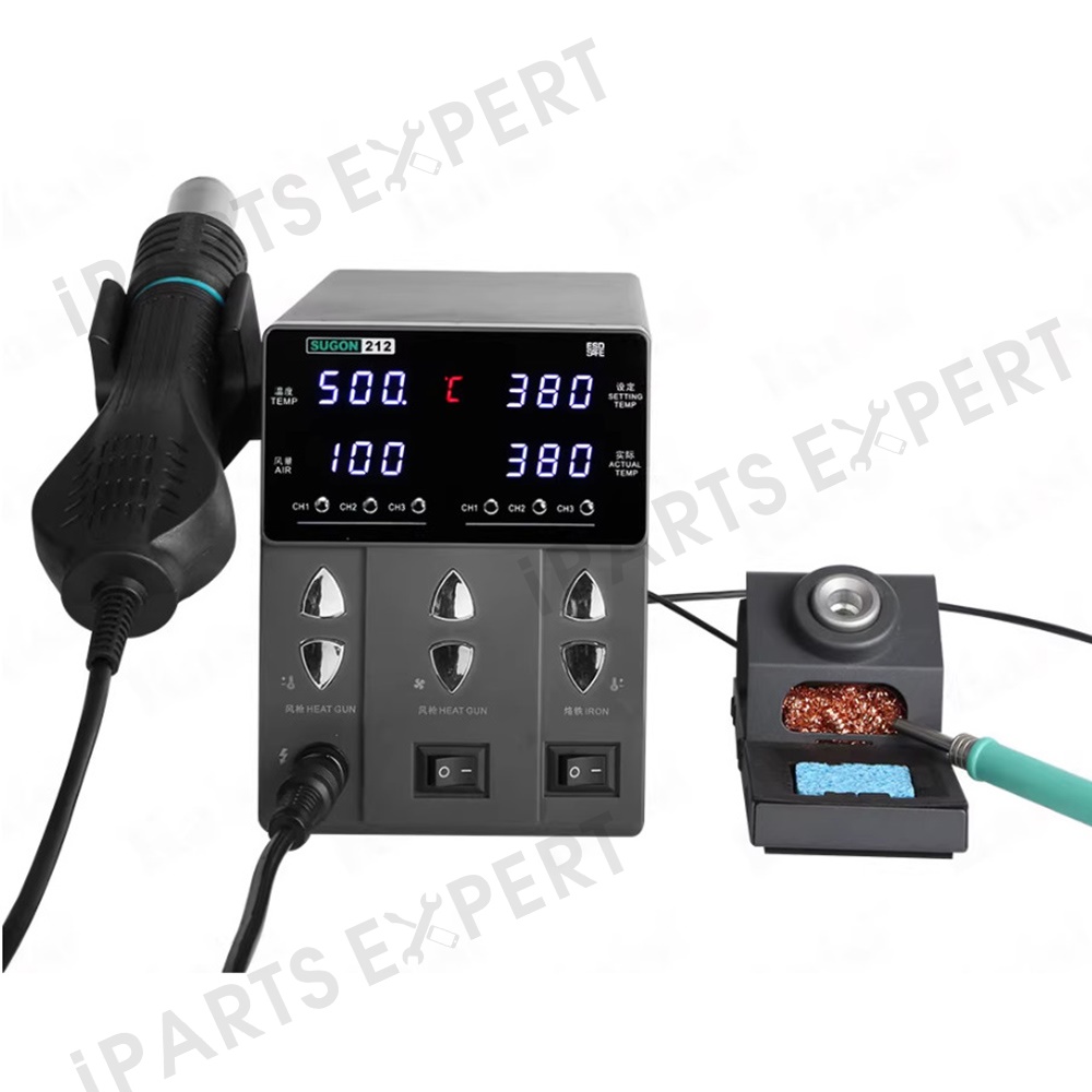 SUGON 212 2 in 1 Hot Air Soldering Iron Digital Display Soldering Station for Phone Electronics Repair - EU Plug