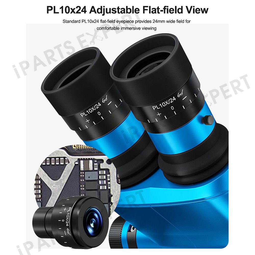 - Eyepiece: PL10X/24 adjustable flat field eyepiece