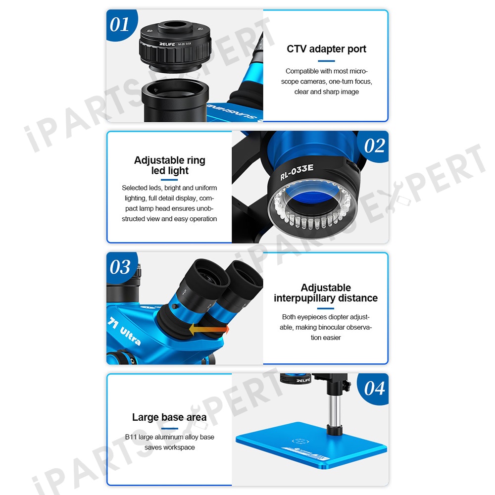 SUNSHINE 71 Ultra Trinocular Microscope 0.65X - 5.5X Zoom for Phone Electronic PCB Soldering Repair - Light Gold