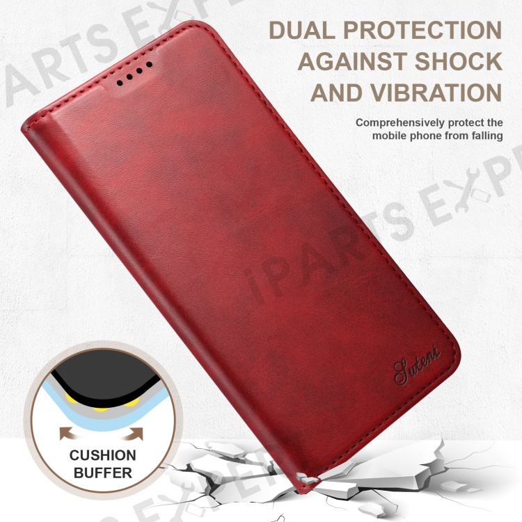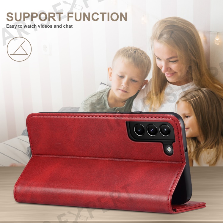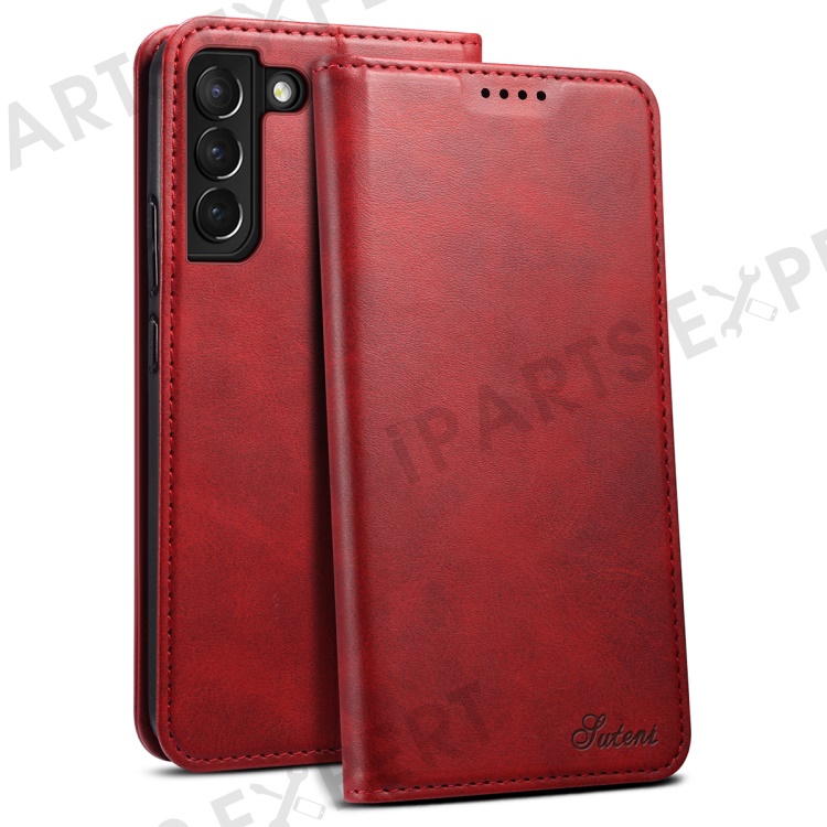 SUTENI for Samsung Galaxy S22+ 5G Auto-absorbed Magnetic Well-protected Stand Wallet Leather Anti-scratch Phone Case Cover - Red