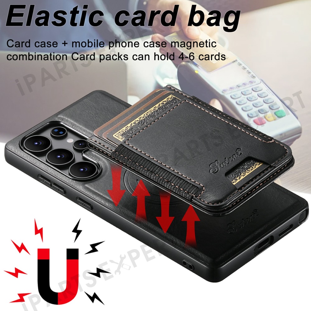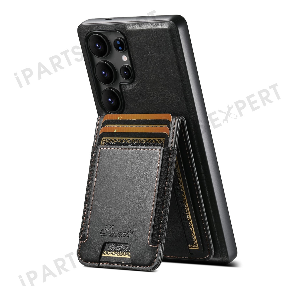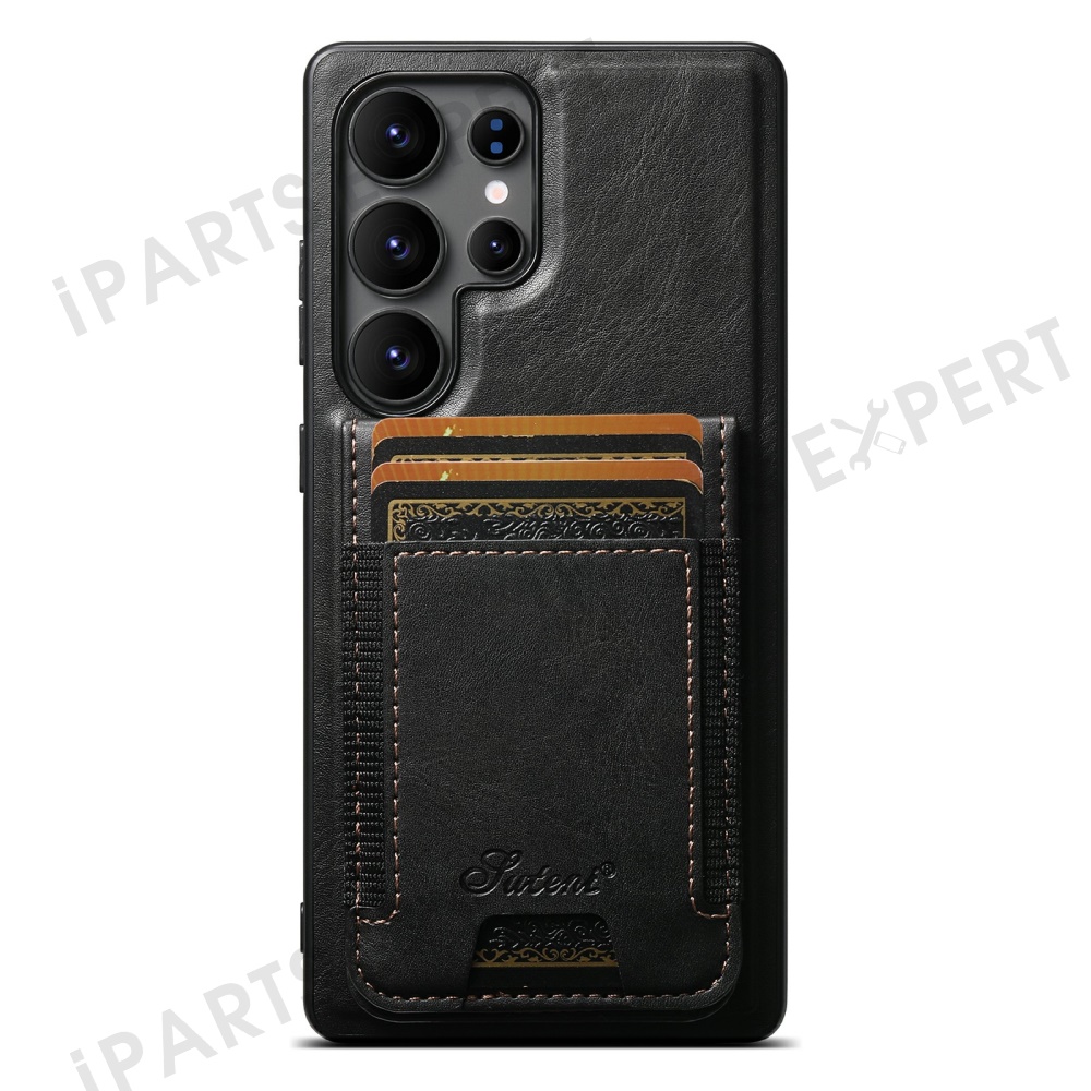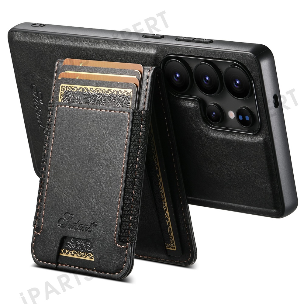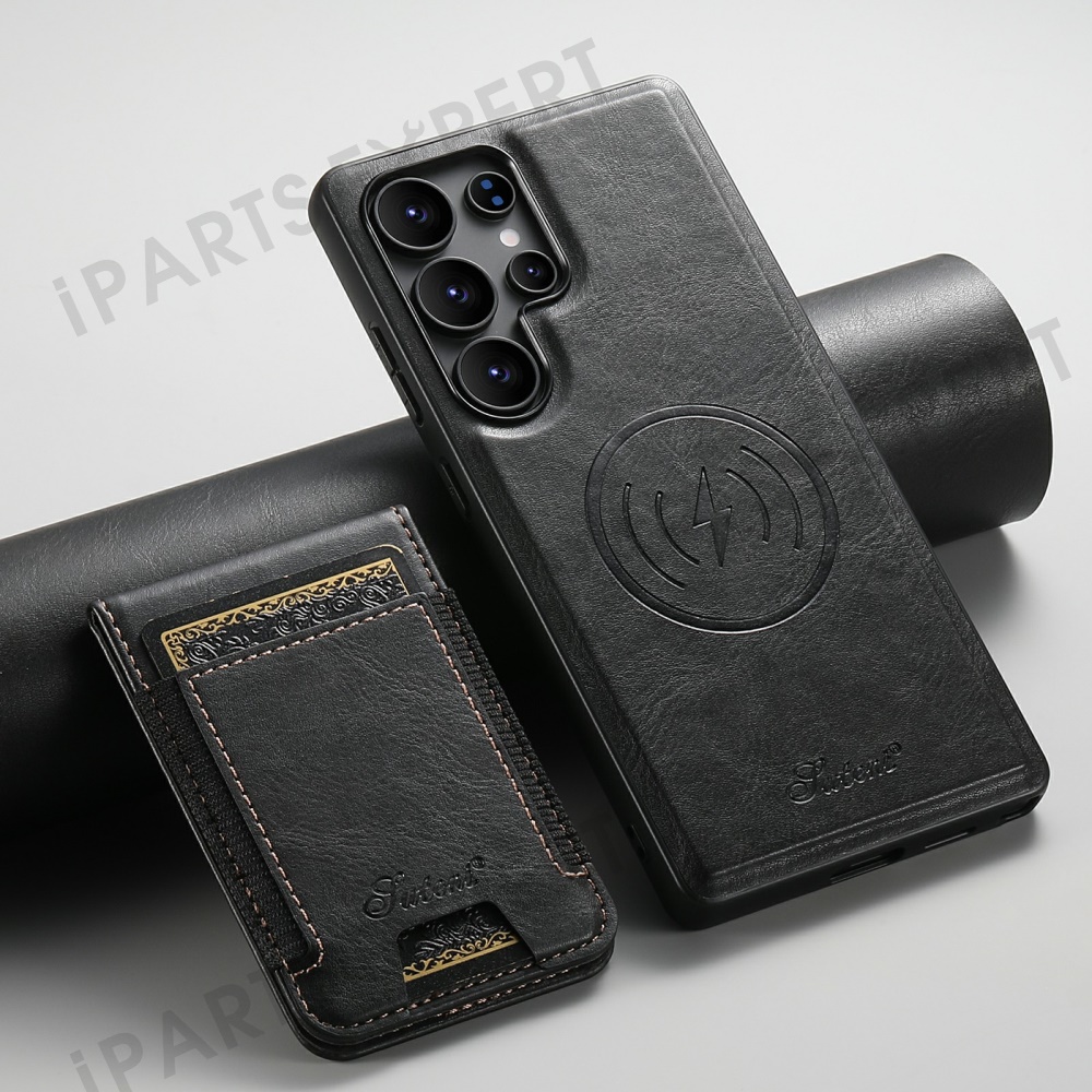 SUTENI For Samsung Galaxy S25 Ultra Leather Phone Case Wallet Card Holder Magnetic Wireless Charging 2-in-1 Detachable Kickstand - Black