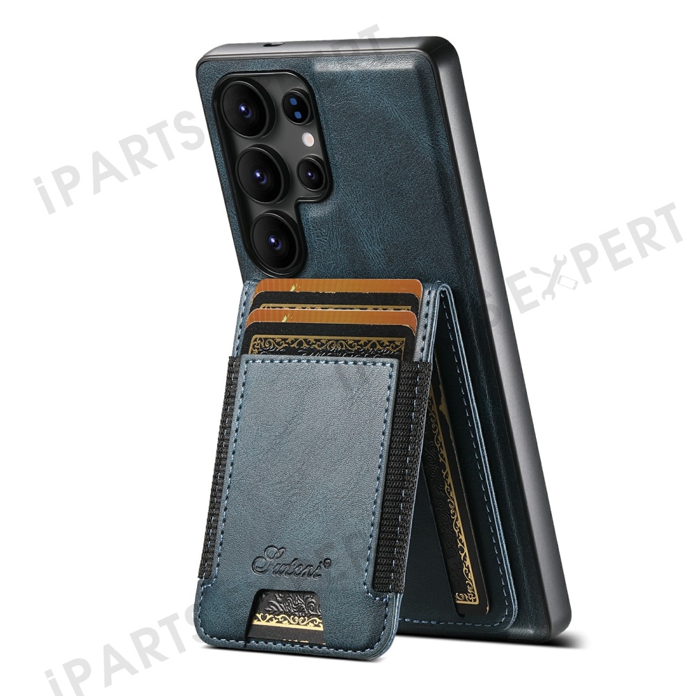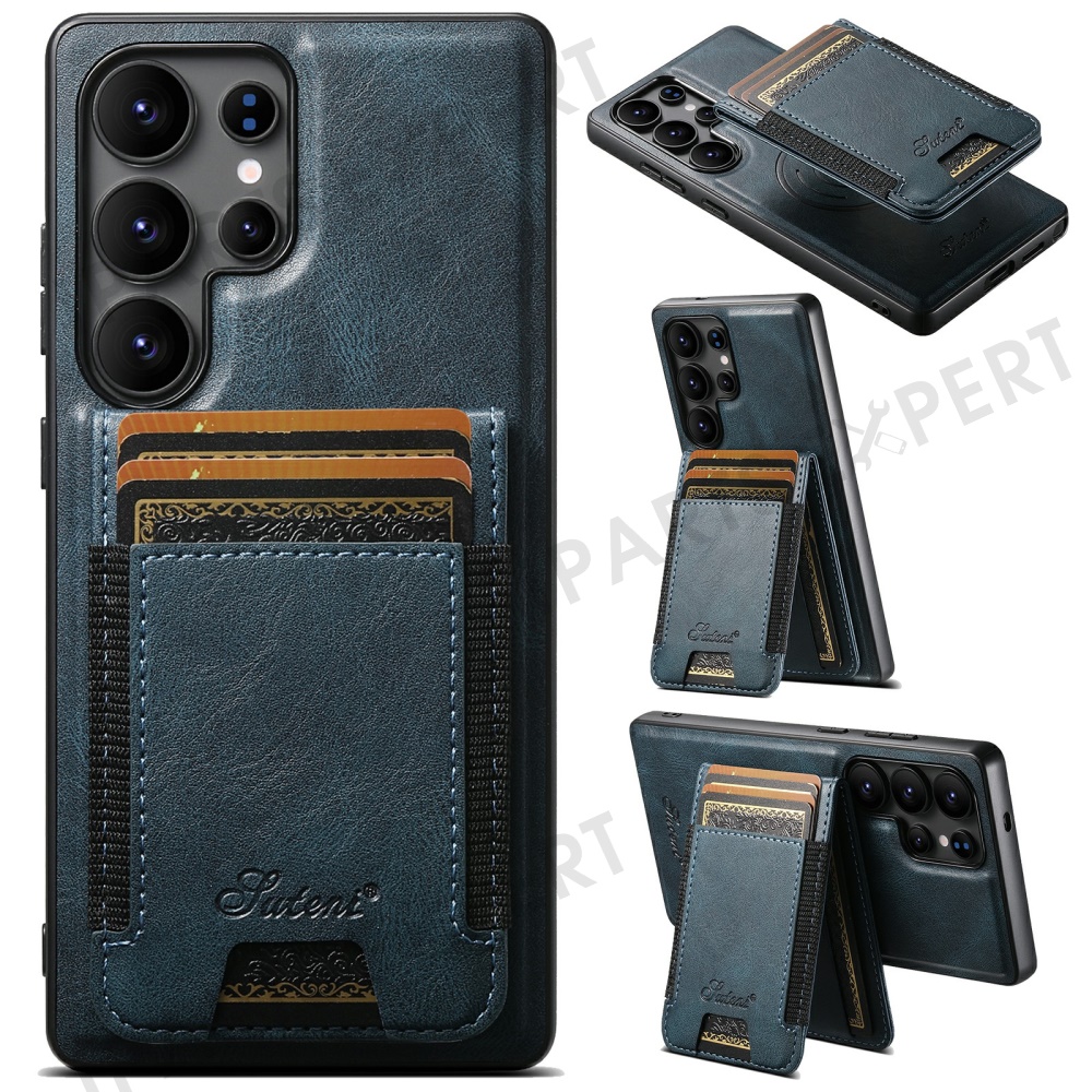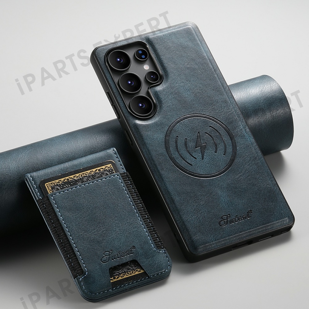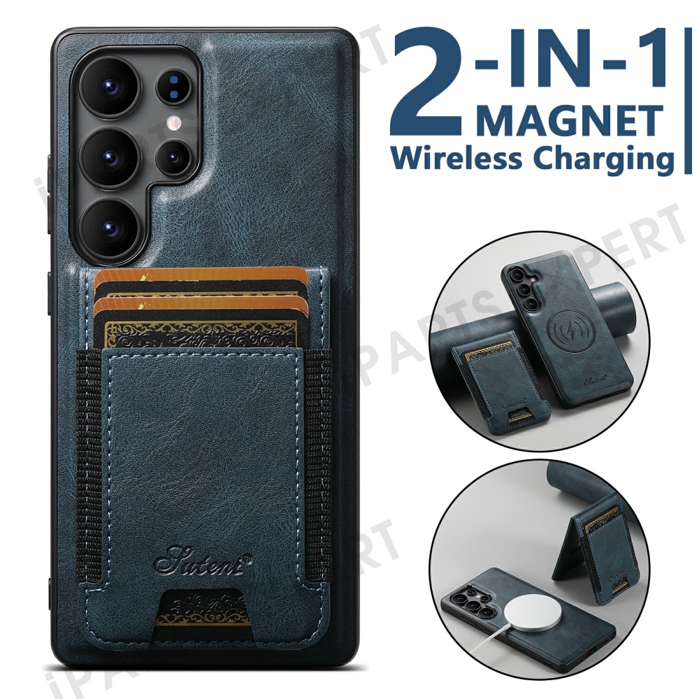 SUTENI For Samsung Galaxy S25 Ultra Leather Phone Case Wallet Card Holder Magnetic Wireless Charging 2-in-1 Detachable Kickstand - Blue