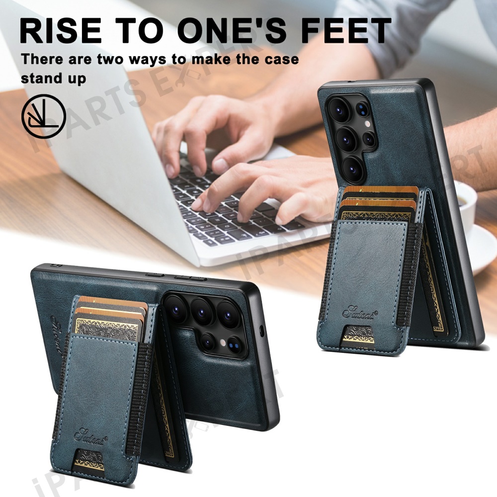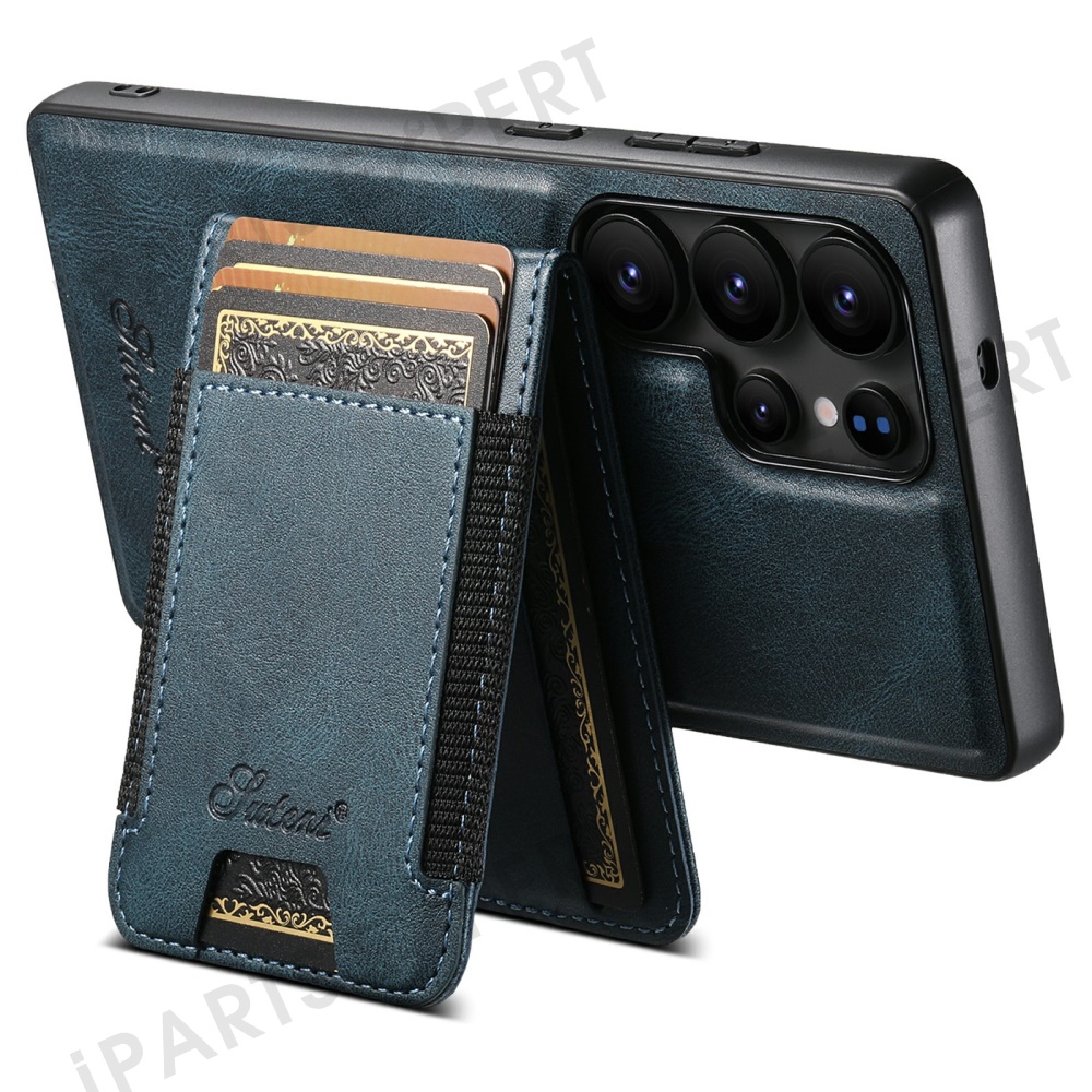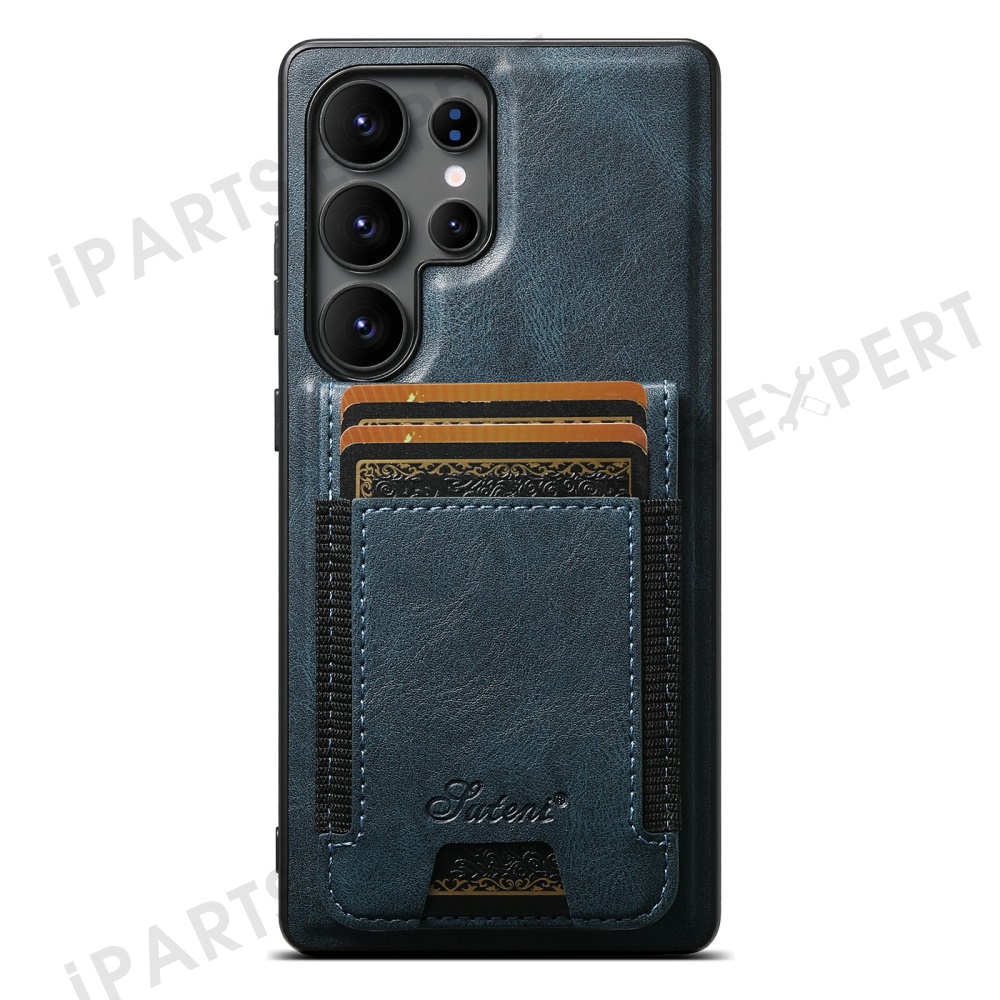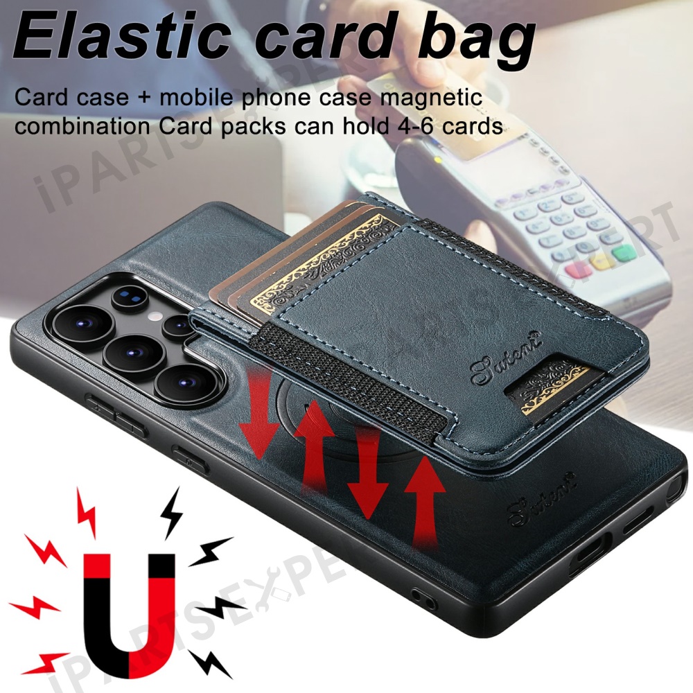SUTENI For Samsung Galaxy S25 Ultra Leather Phone Case Wallet Card Holder Magnetic Wireless Charging 2-in-1 Detachable Kickstand - Blue
