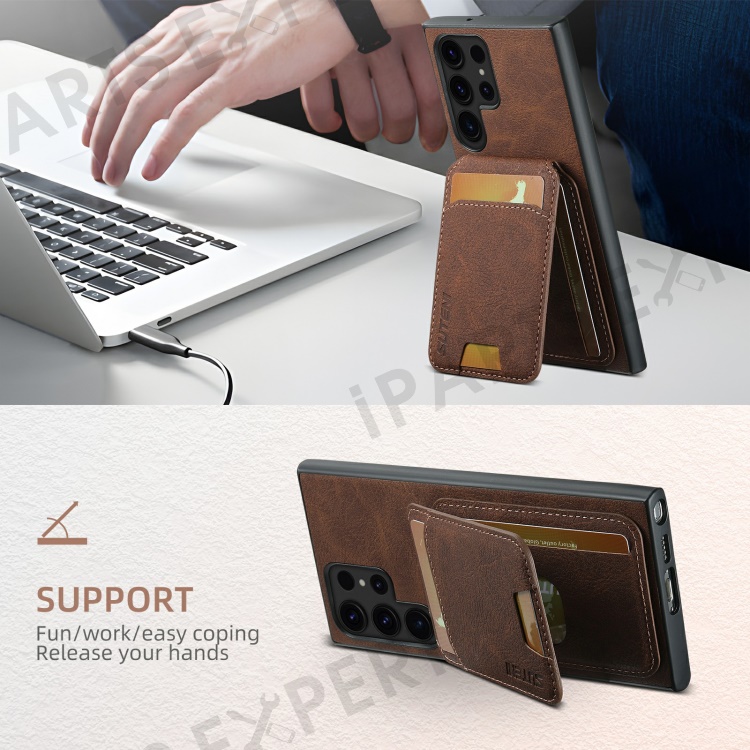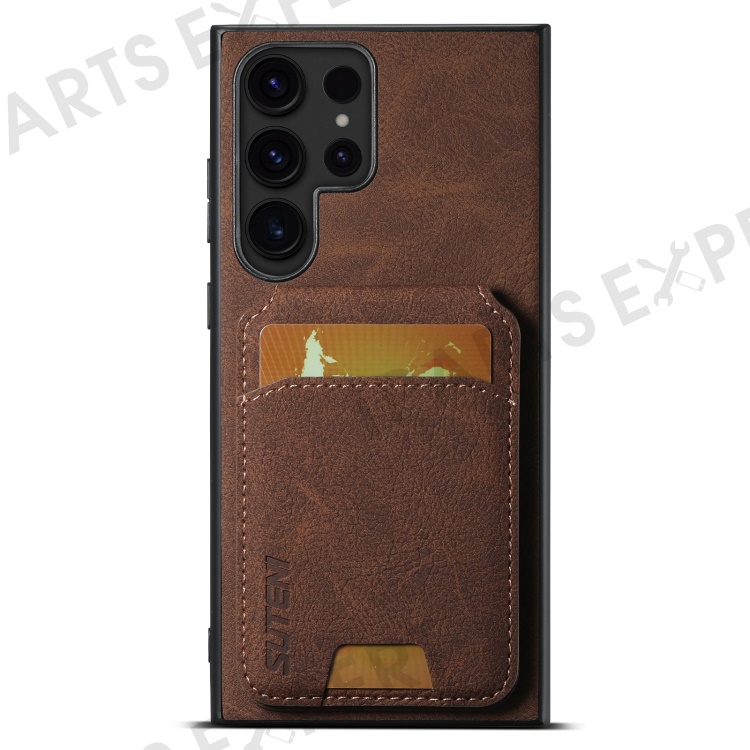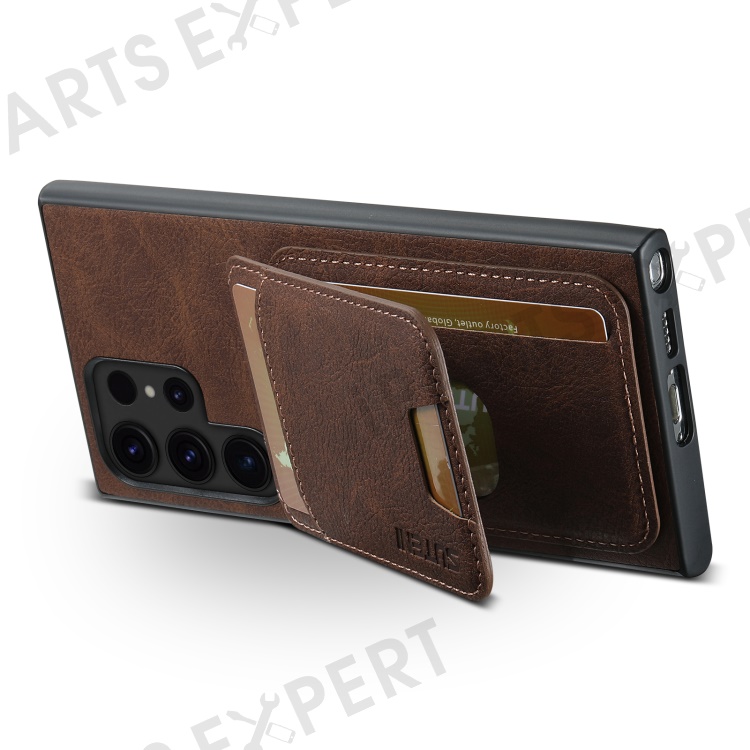 SUTENI H02 For Samsung Galaxy S23 Ultra Kickstand Case Card Slots Leather Back Cover - Brown
