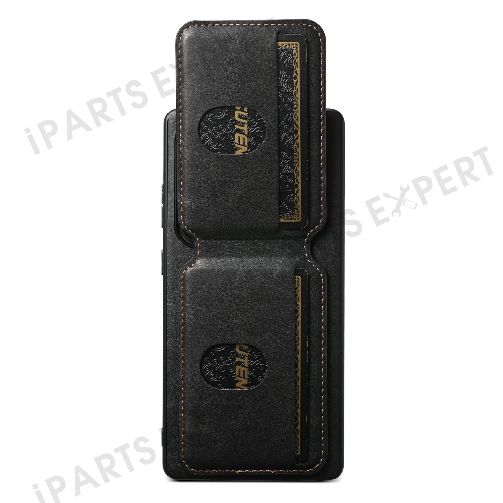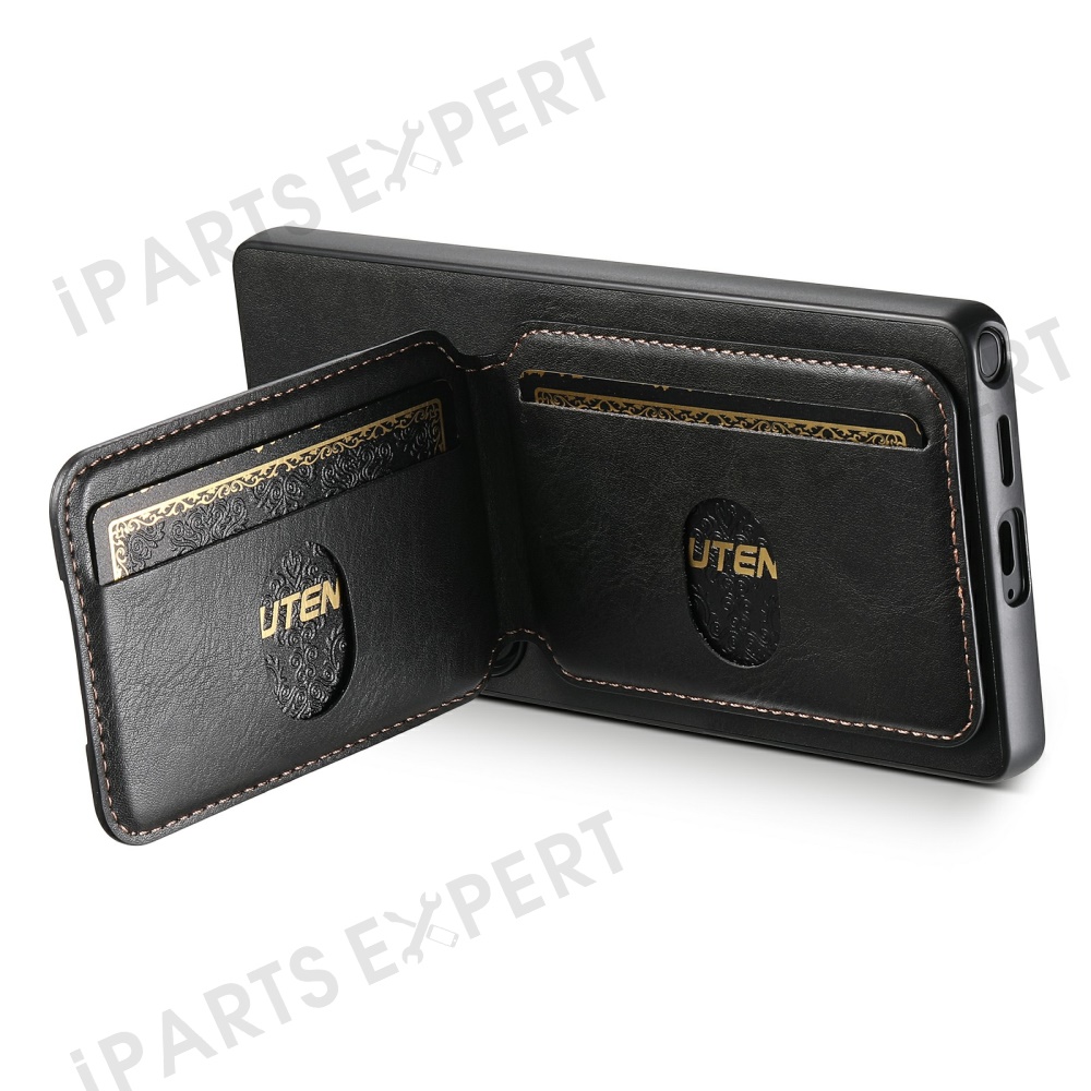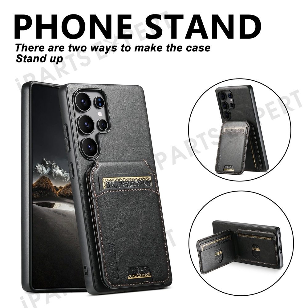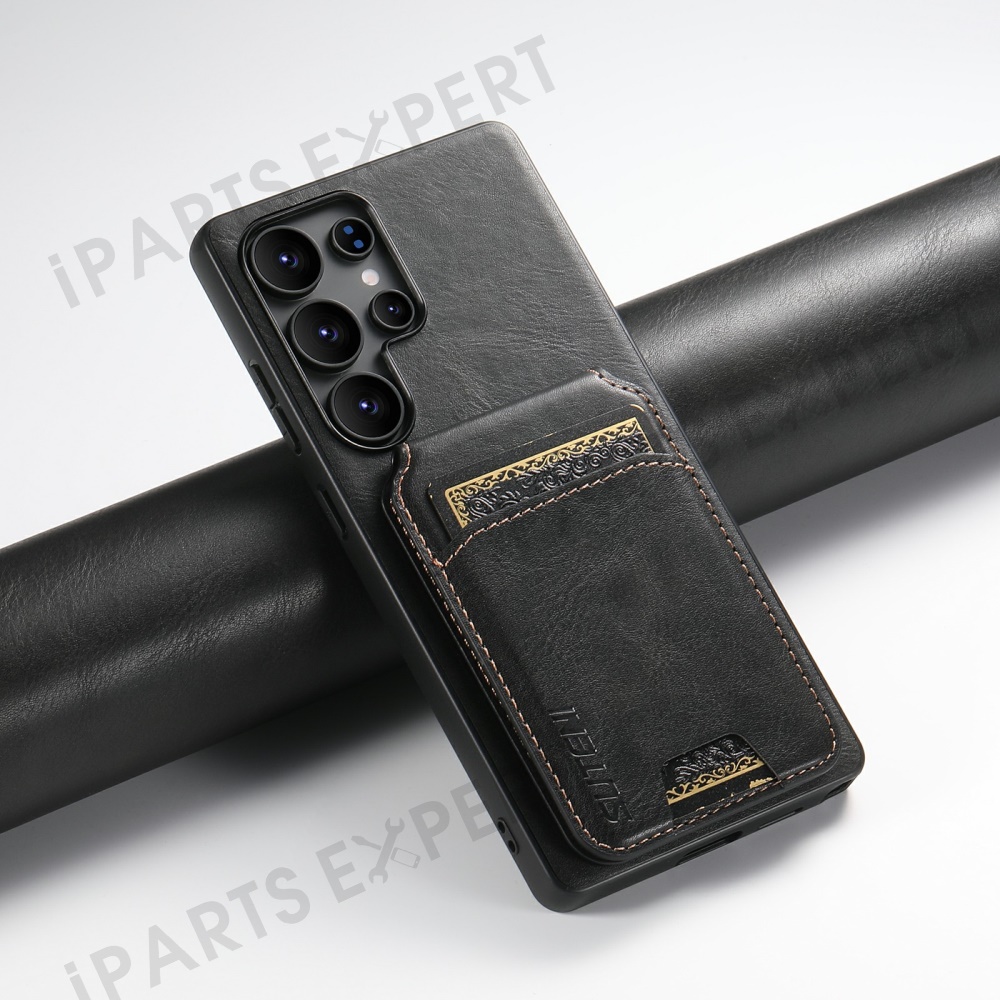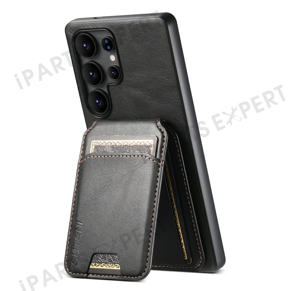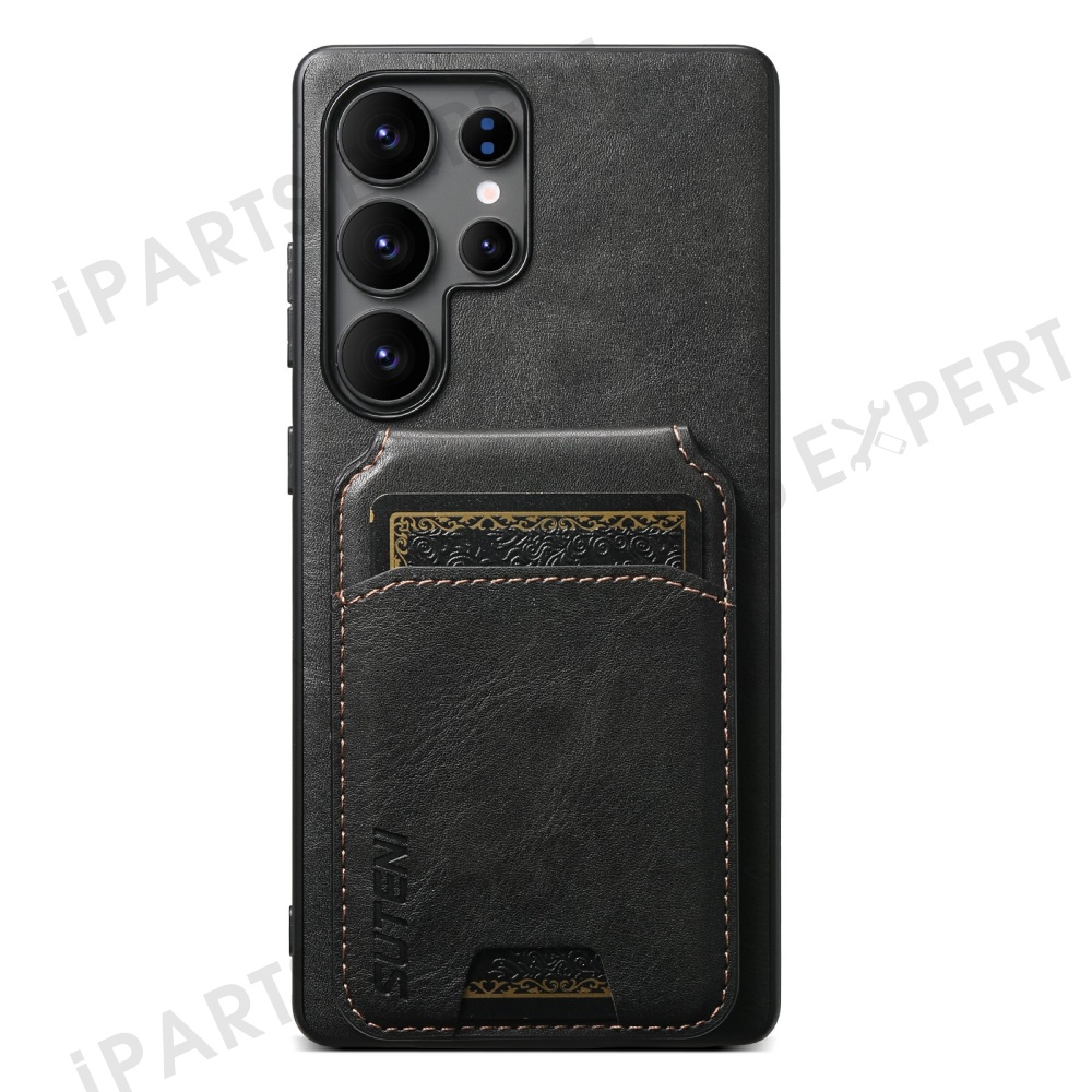 SUTENI H02 For Samsung Galaxy S25 Ultra Case Waxy Texture Leather + TPU Card Slots Kickstand Phone Cover - Black