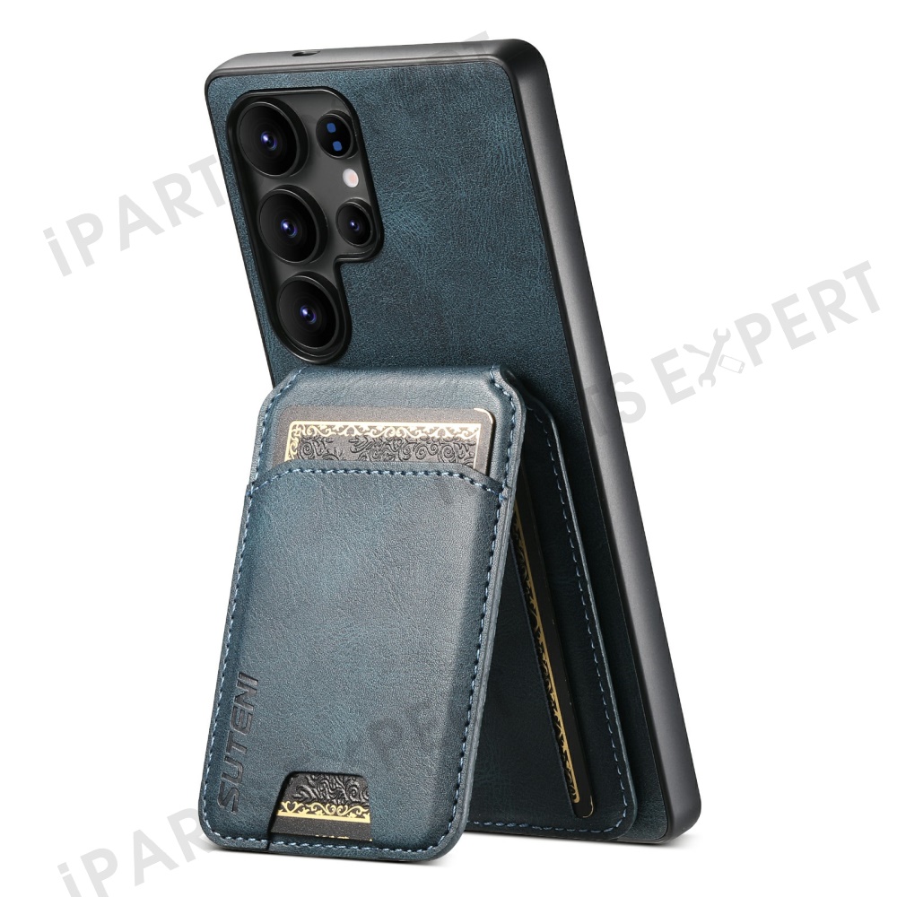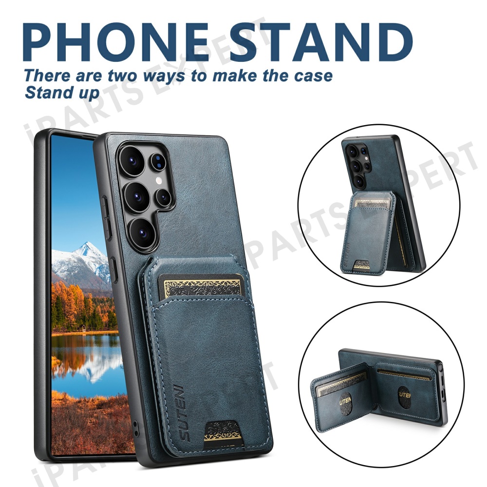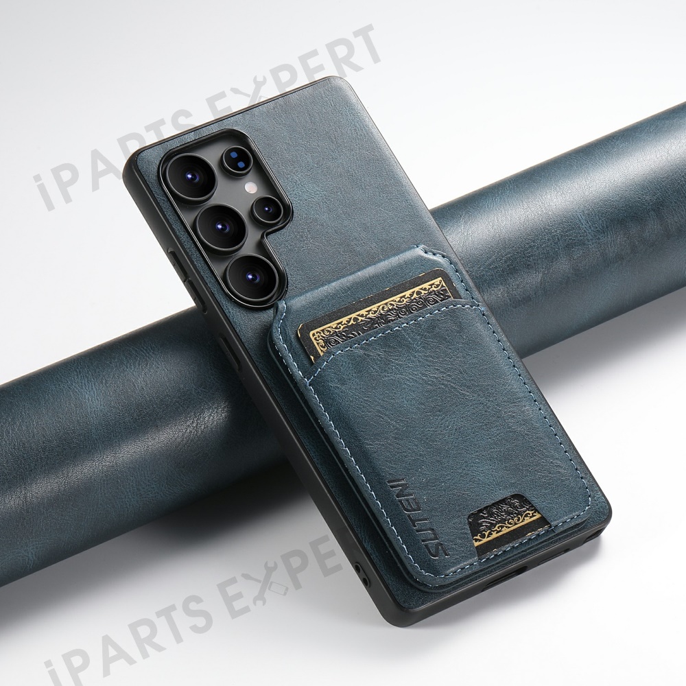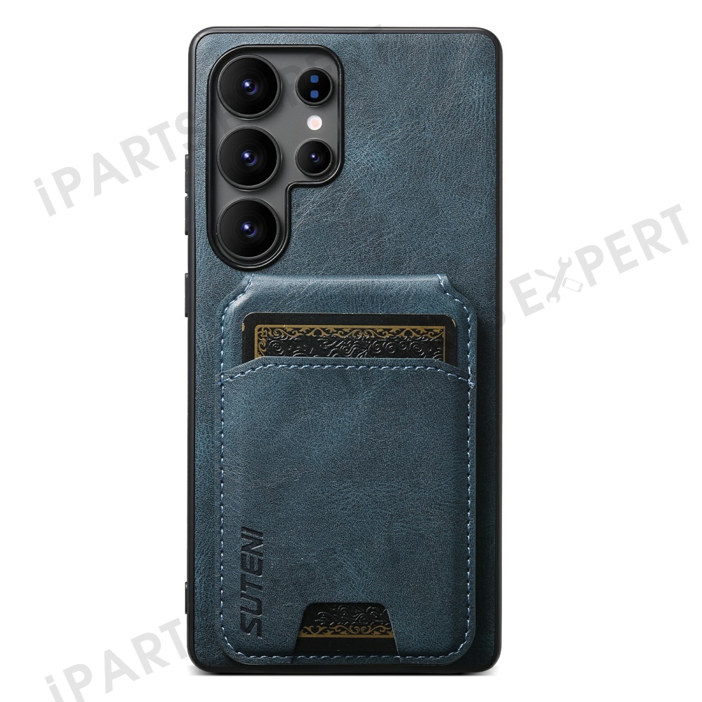 SUTENI H02 For Samsung Galaxy S25 Ultra Case Waxy Texture Leather + TPU Card Slots Kickstand Phone Cover - Blue