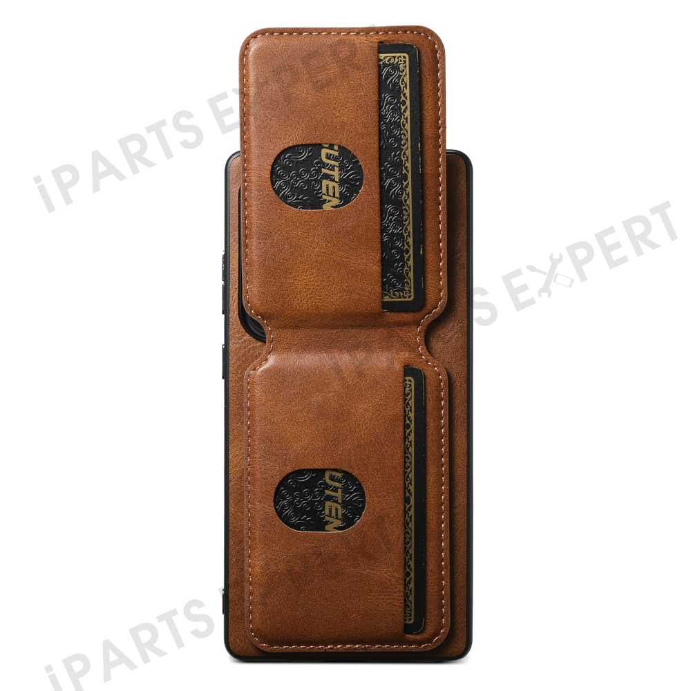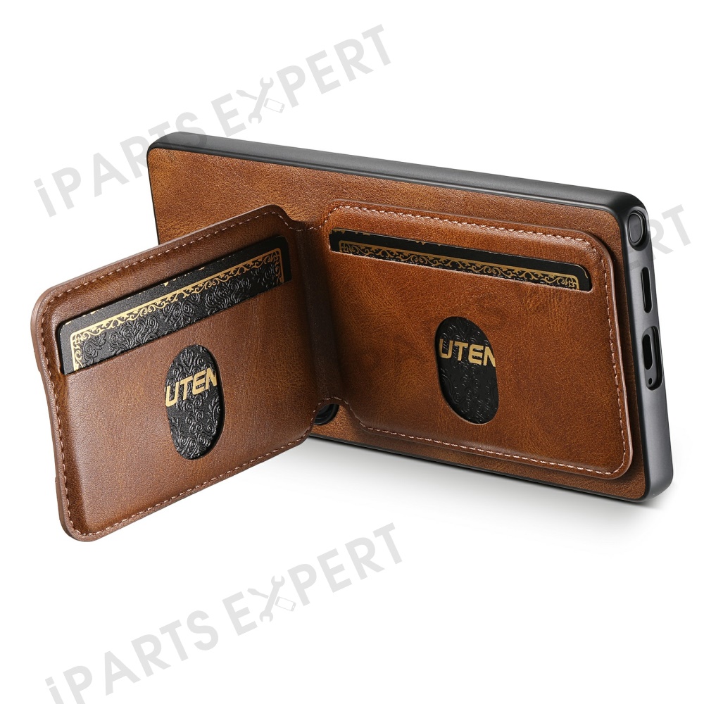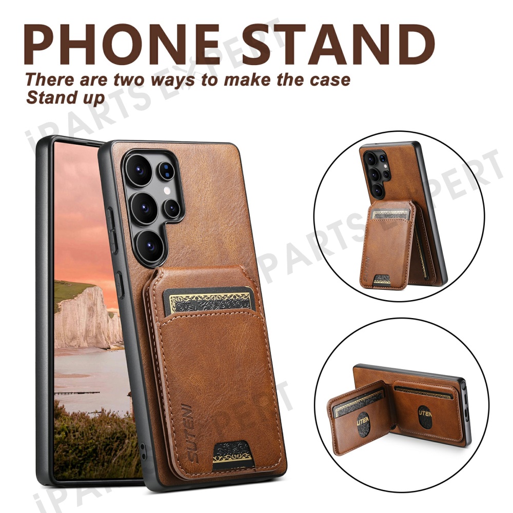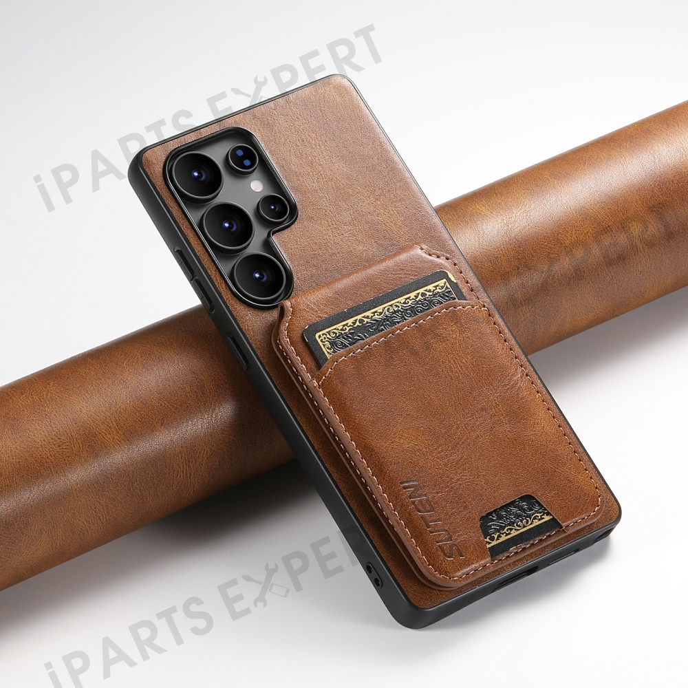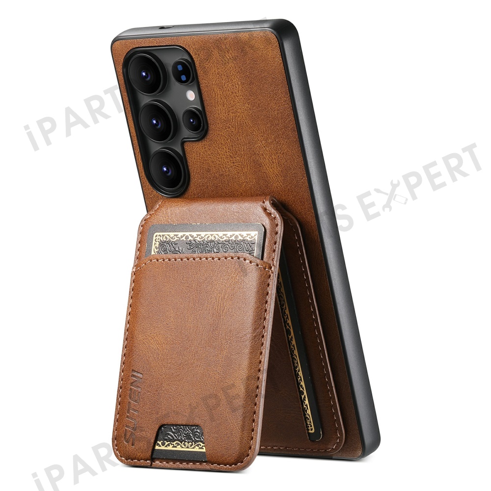 SUTENI H02 For Samsung Galaxy S25 Ultra Case Waxy Texture Leather + TPU Card Slots Kickstand Phone Cover - Brown