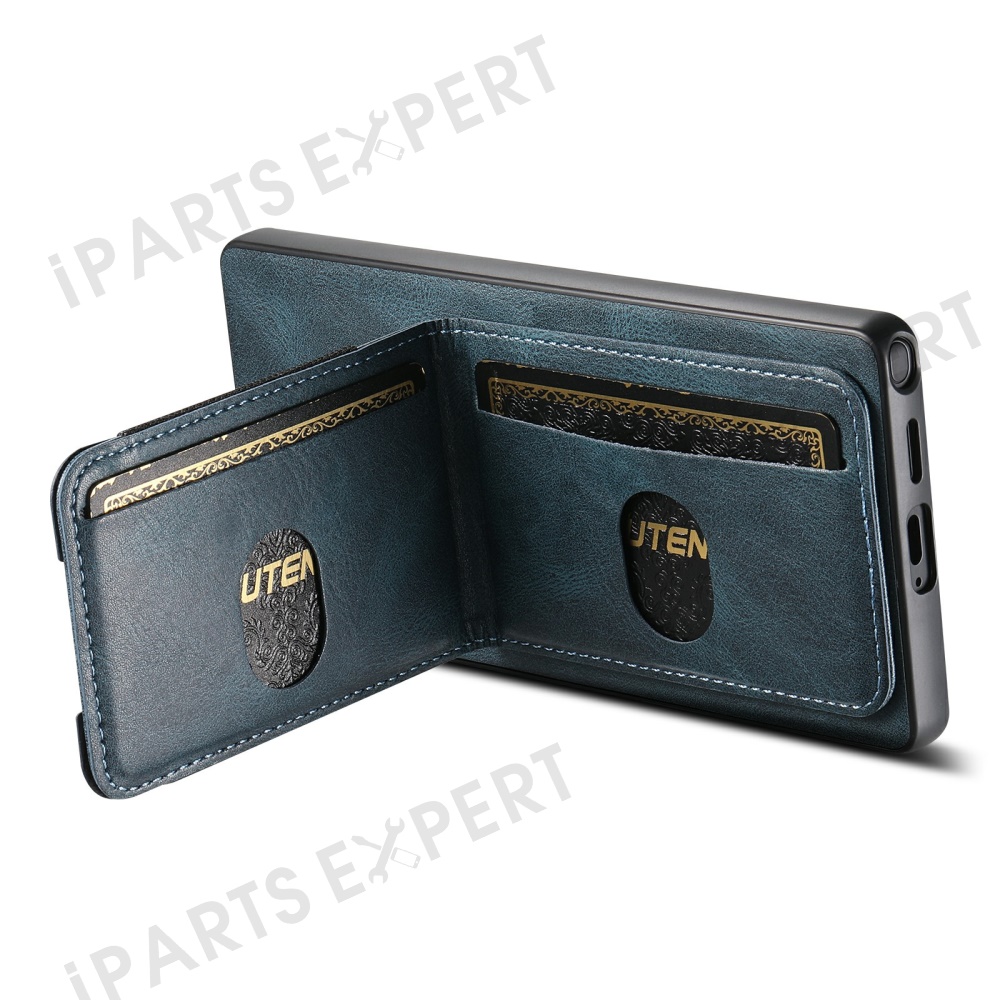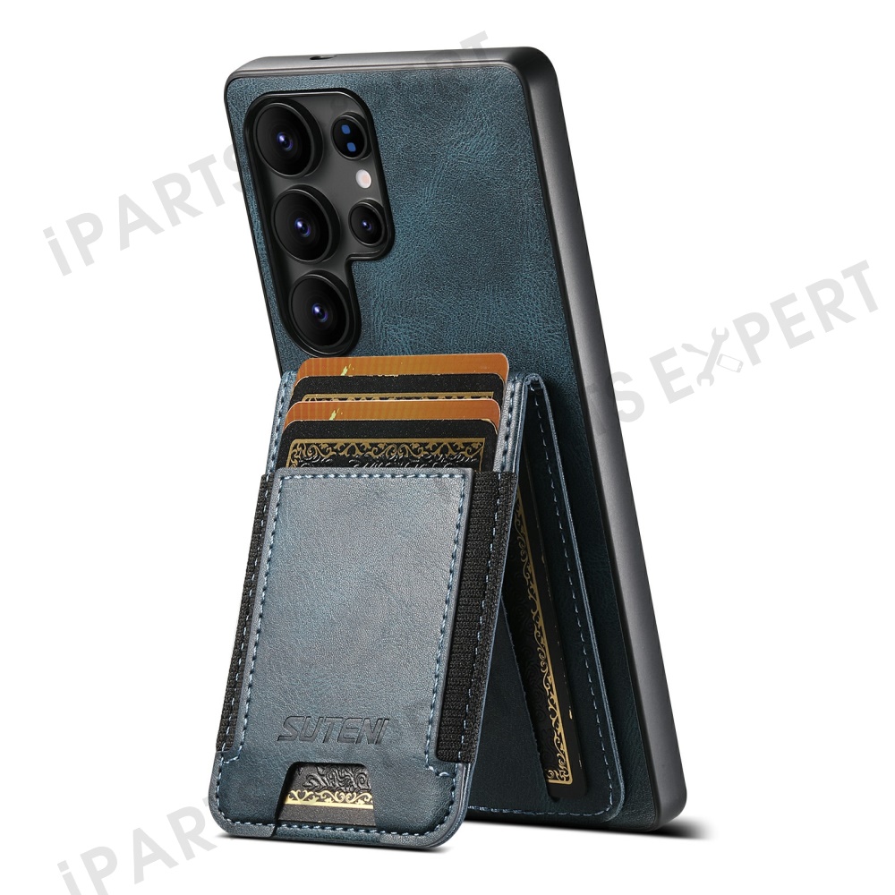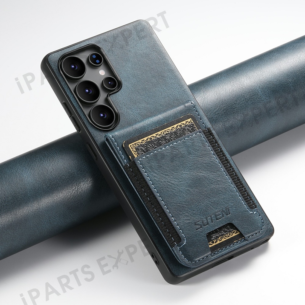 SUTENI H03 For Samsung Galaxy S25 Ultra Case Card Holder Waxy Texture Leather + TPU Phone Cover - Blue