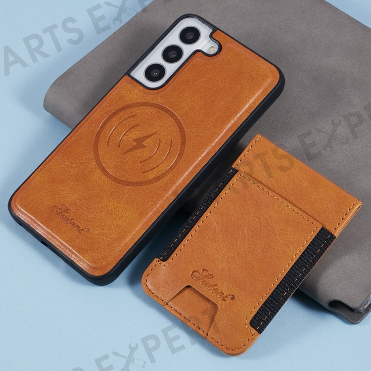 SUTENI H17 For Samsung Galaxy S22+ 5G Case Magnetic Case Card Holder Kickstand Phone Cover - Khaki