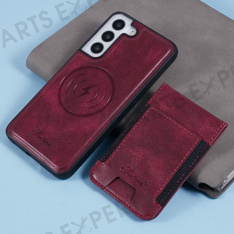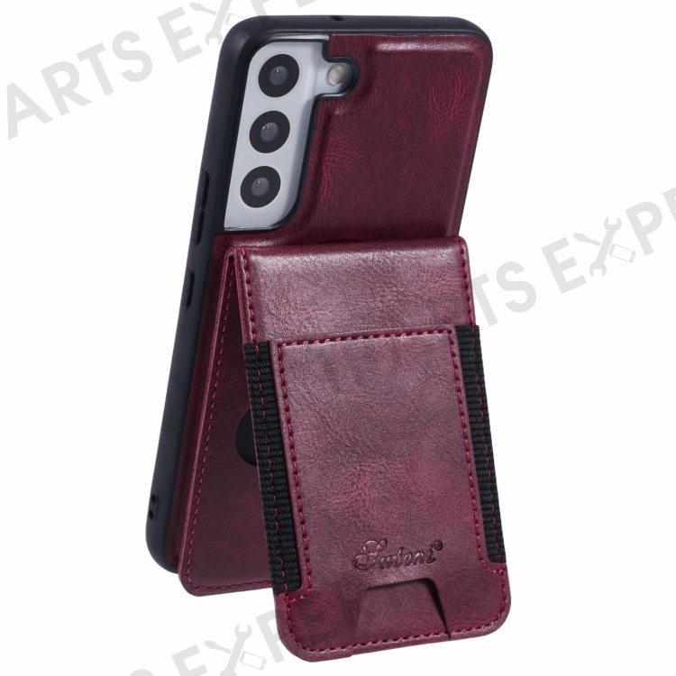 SUTENI H17 For Samsung Galaxy S22+ 5G Case Magnetic Case Card Holder Kickstand Phone Cover - Red