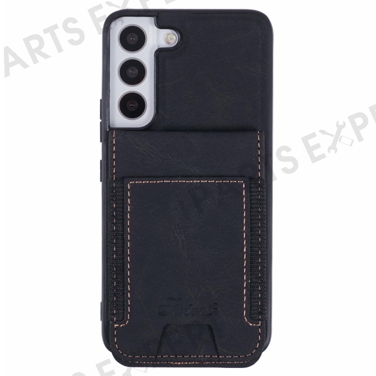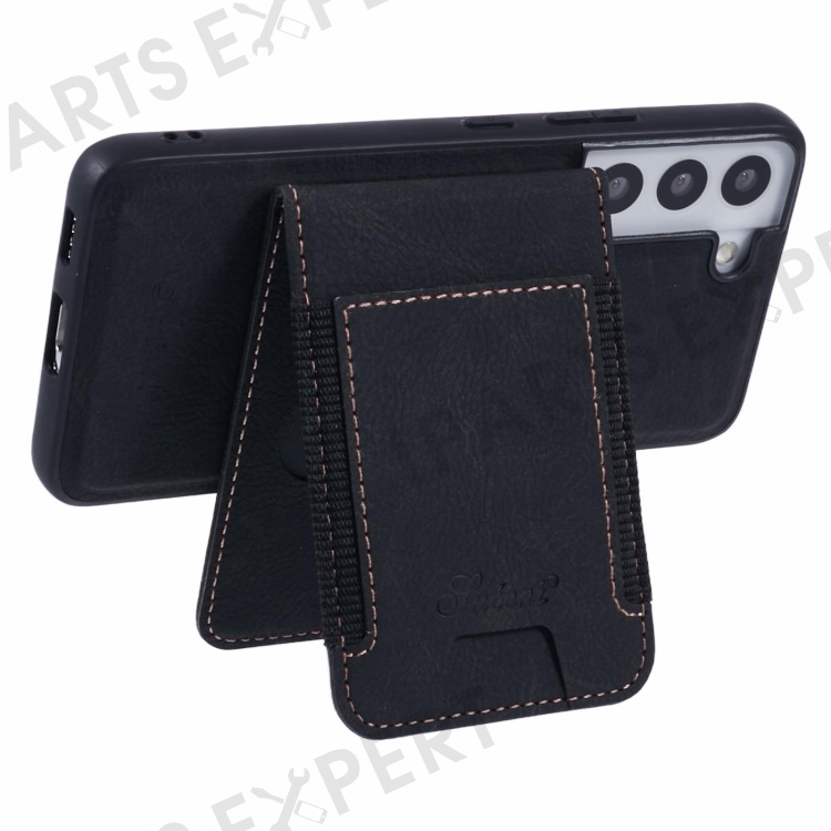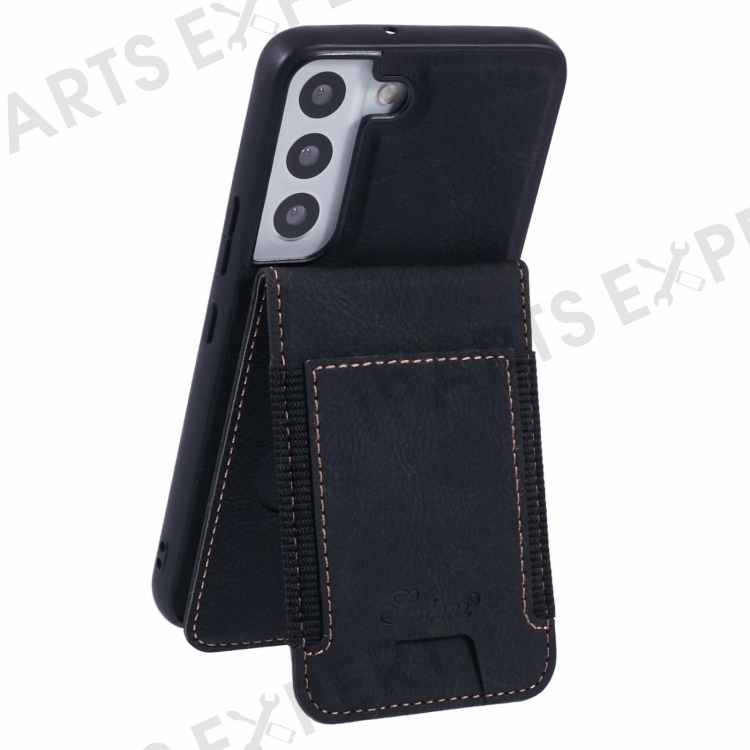 SUTENI H17 For Samsung Galaxy S22+ 5G Magnetic Case Card Slots Leather+TPU Kickstand Phone Cover - Black