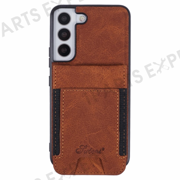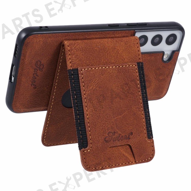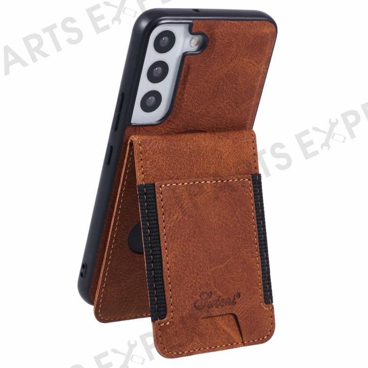 SUTENI H17 For Samsung Galaxy S22+ 5G Magnetic Case Card Slots Leather+TPU Kickstand Phone Cover - Khaki