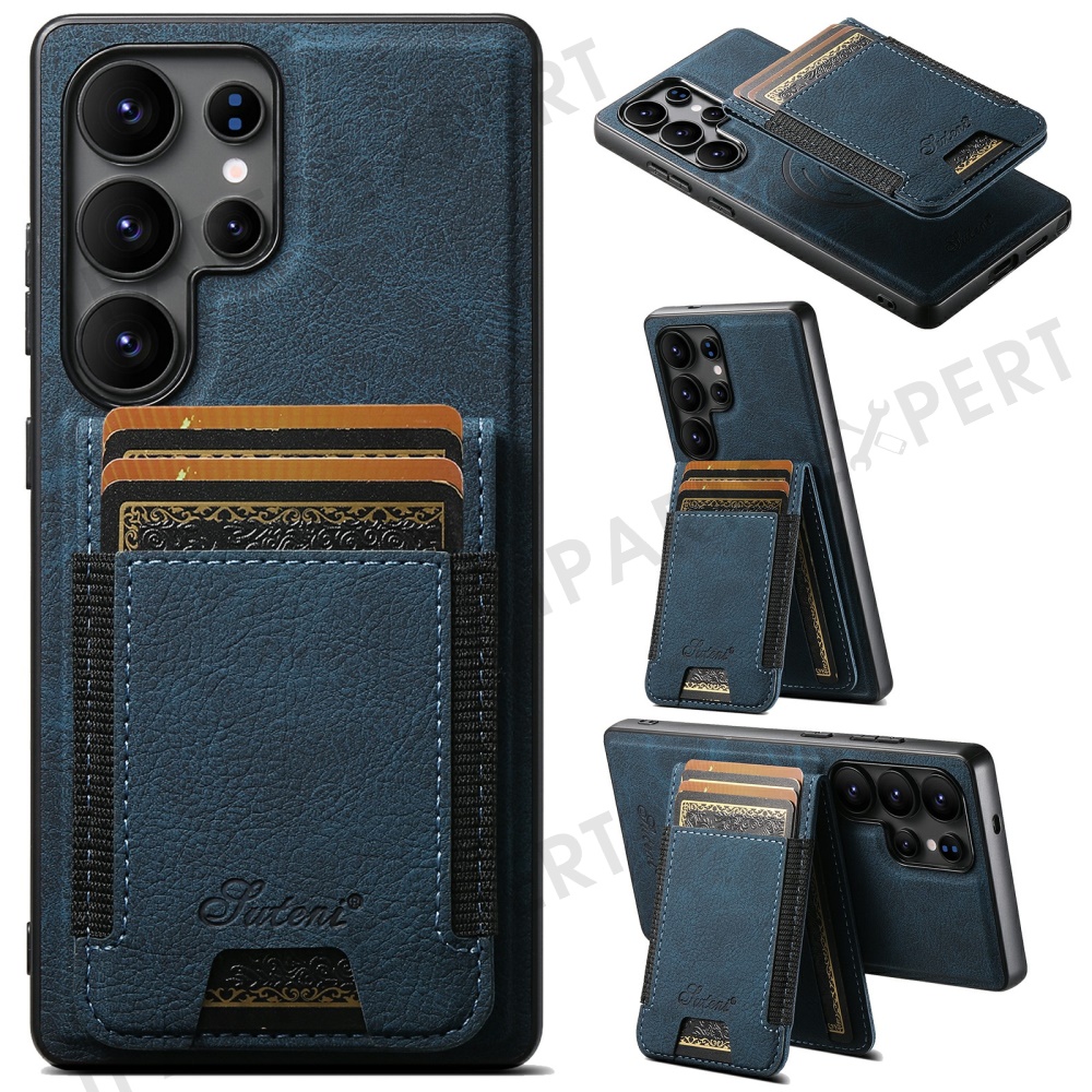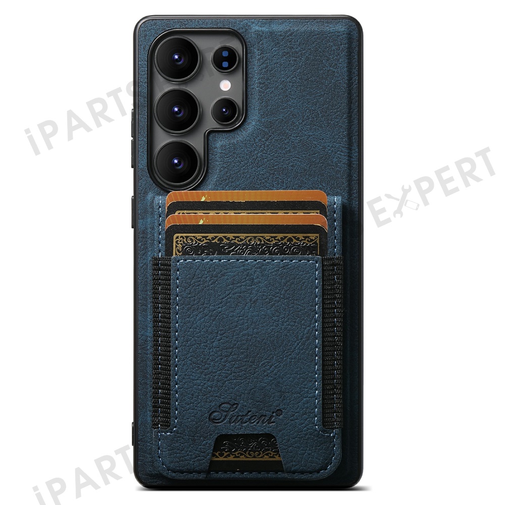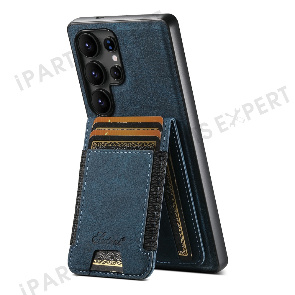 SUTENI H17 For Samsung Galaxy S25 Ultra Magnetic Case Card Slots Leather + TPU Kickstand Phone Cover - Blue