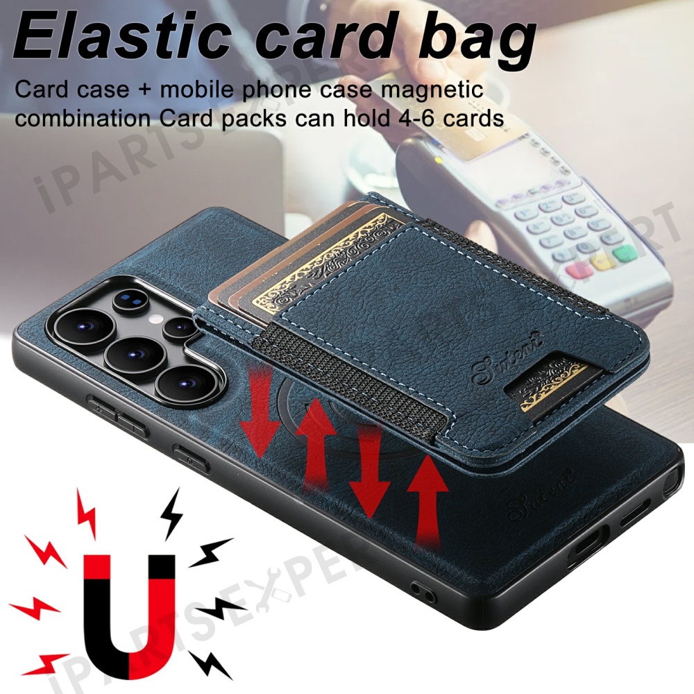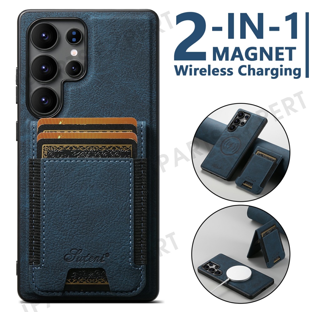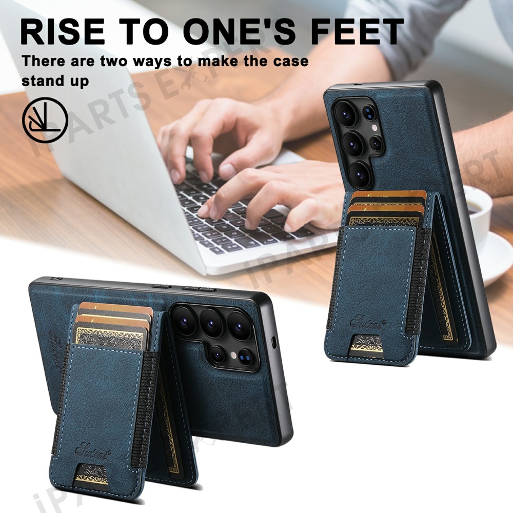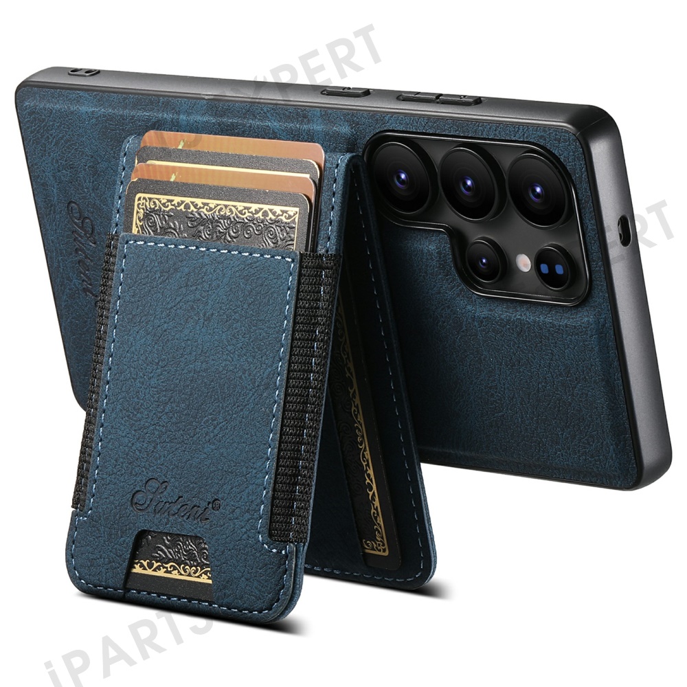 SUTENI H17 For Samsung Galaxy S25 Ultra Magnetic Case Card Slots Leather + TPU Kickstand Phone Cover - Blue