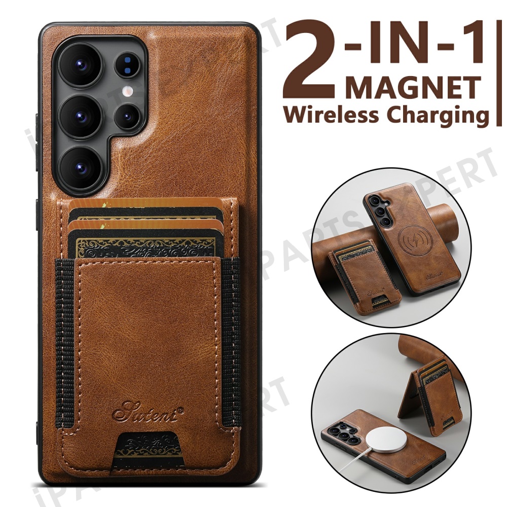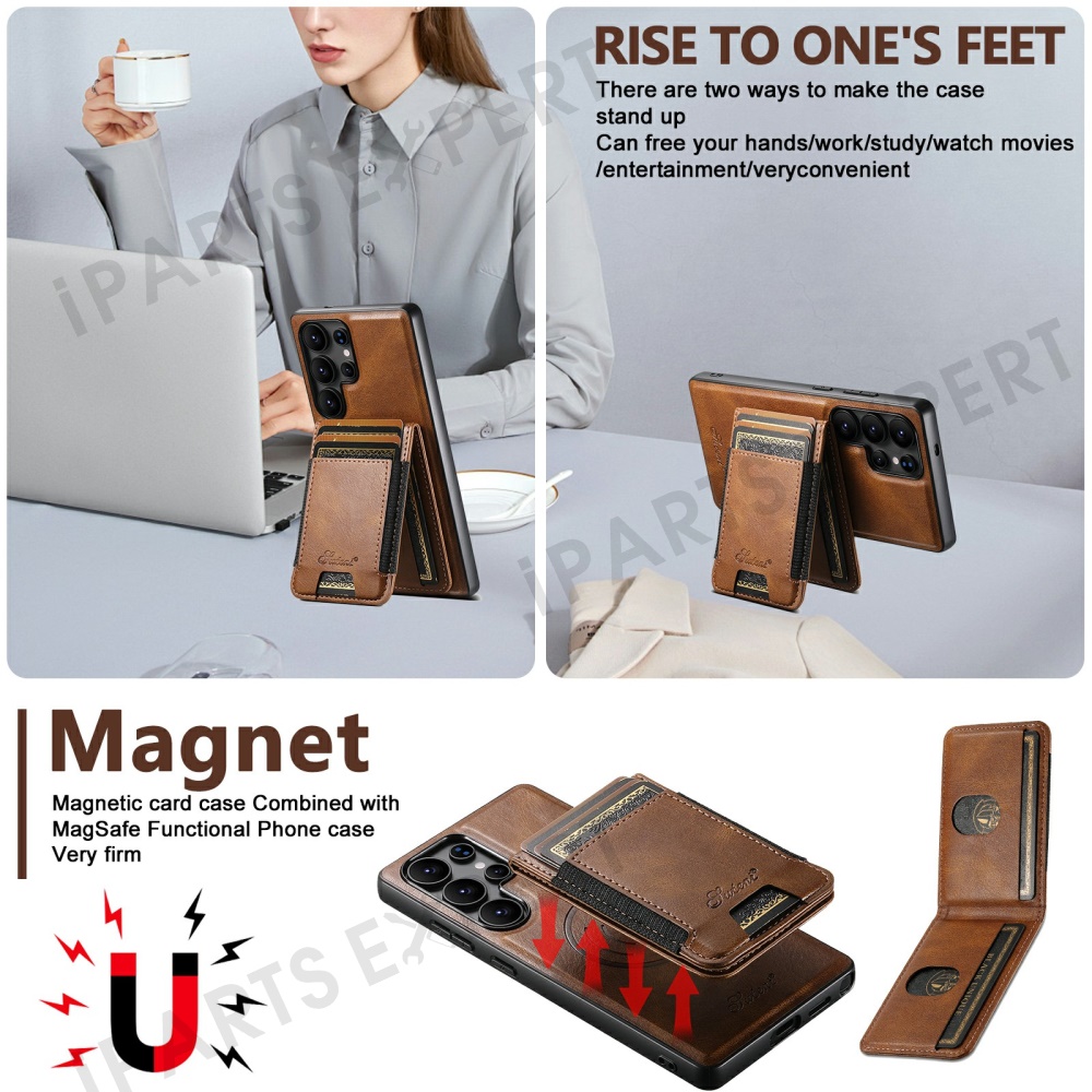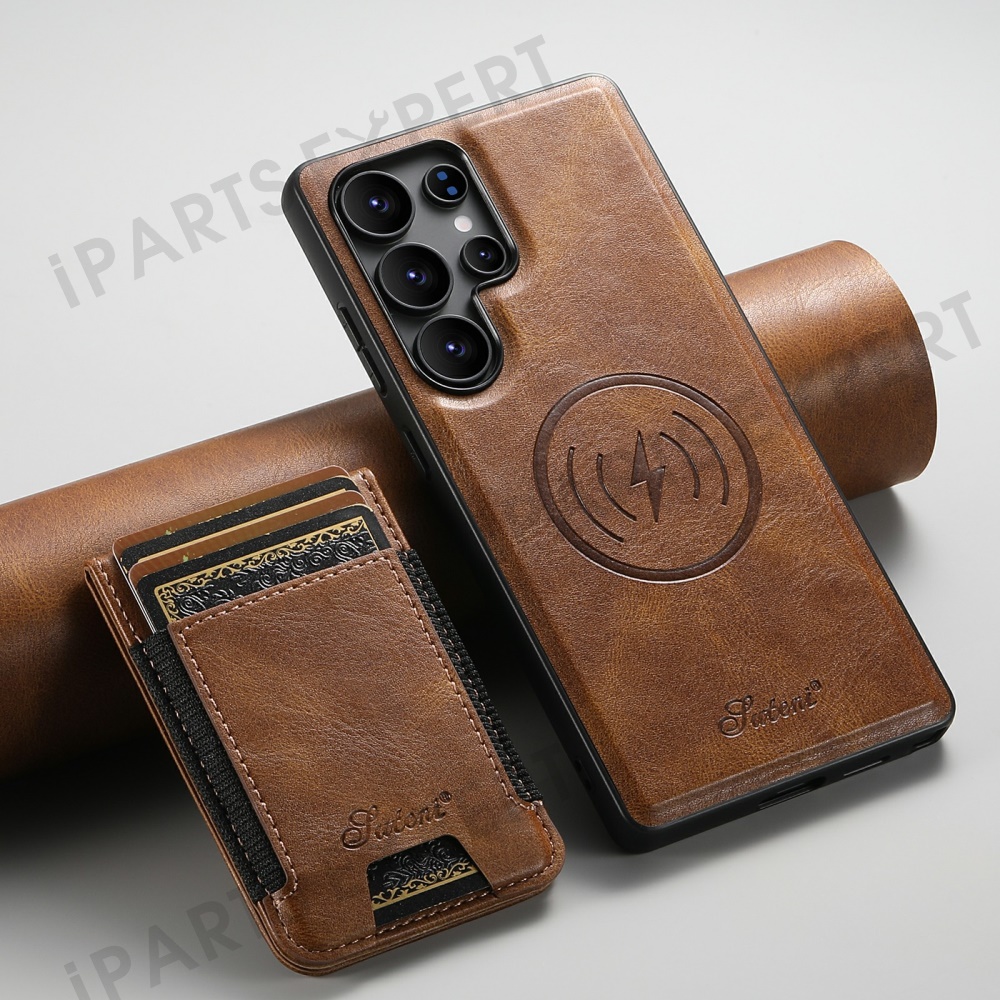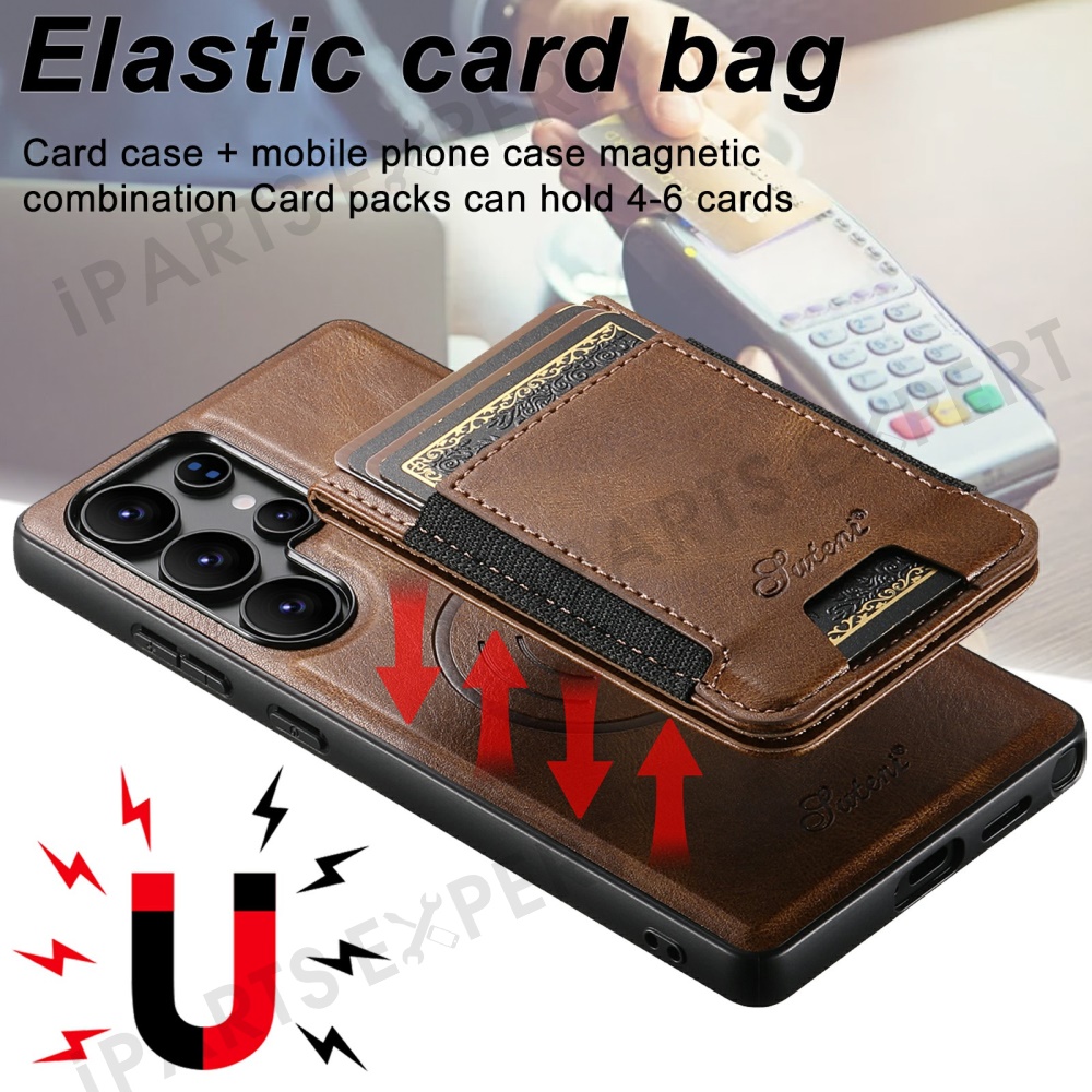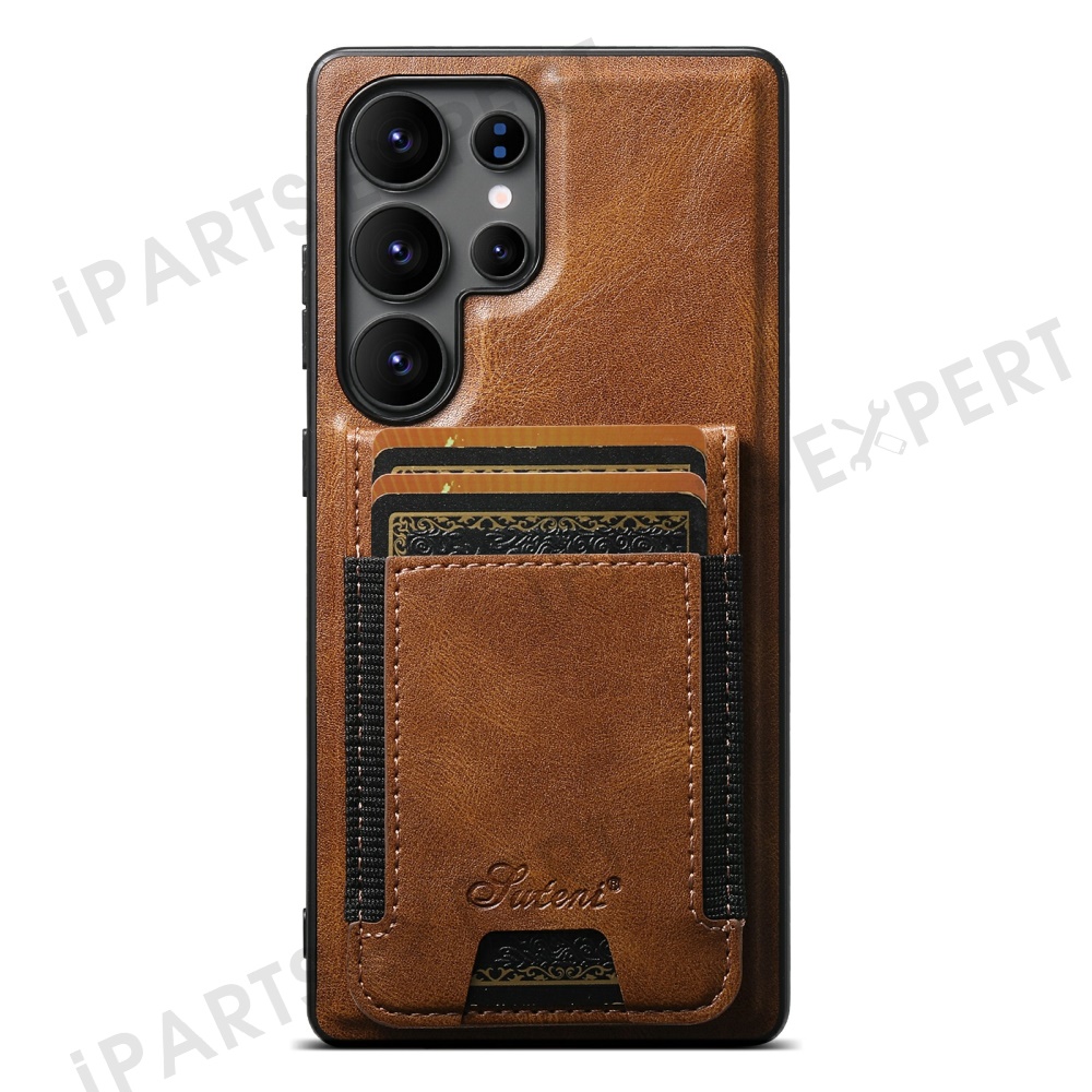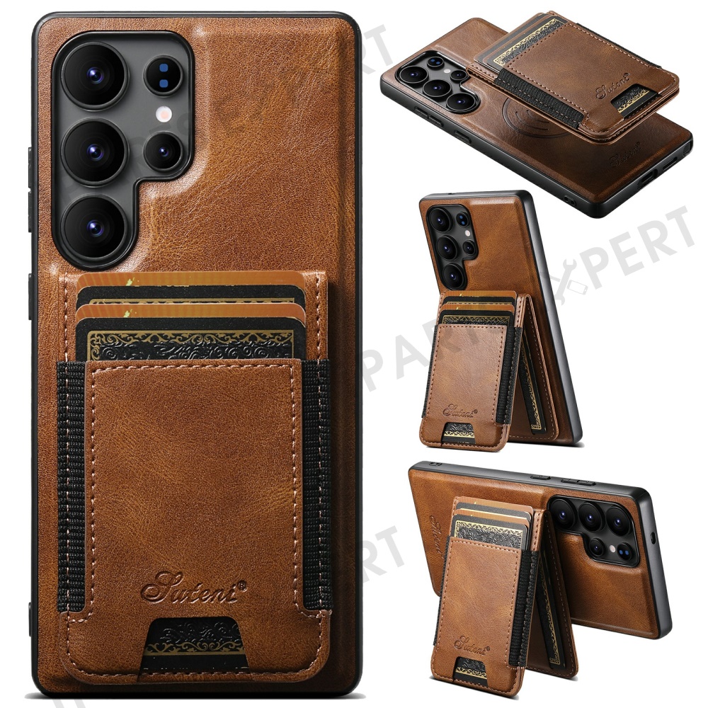 SUTENI H17 For Samsung Galaxy S25 Ultra Magnetic Case Card Slots Leather + TPU Kickstand Phone Cover - Brown