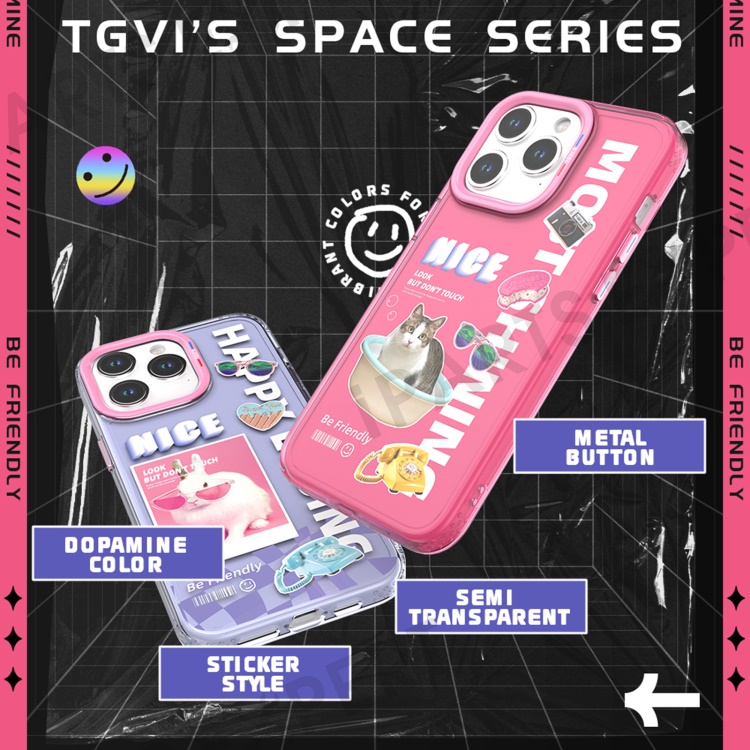 TGVI'S Space Series For iPhone 15 Pro Case Sweet Funny TPU+PC Back Cover with Sticker Style Design - Purple