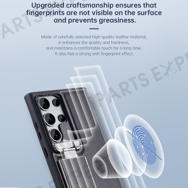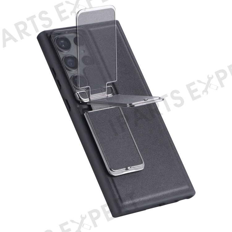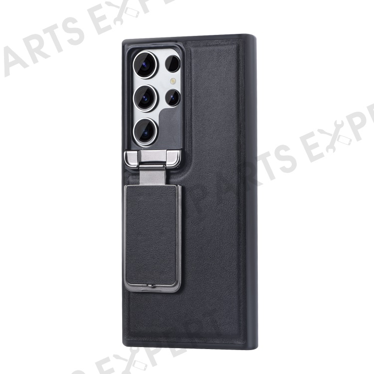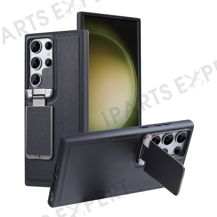 TPU PU Leather Case for Samsung Galaxy S23 Ultra 5G Anti-Drop Protective Cell Phone Shell with Lens Cover Kickstand - Black