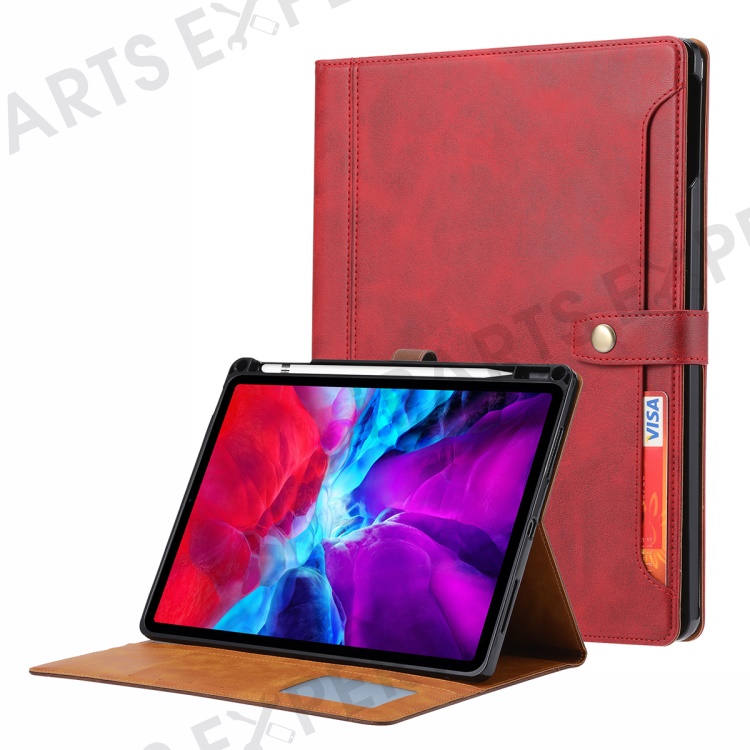 TPU + PU Leather Auto Wake/Sleep Tablet Case Pen Slot Stand Wallet Cover for iPad Pro 11-inch (2021) - Red