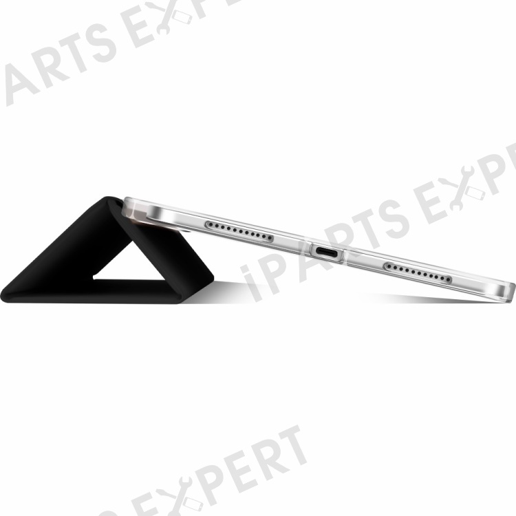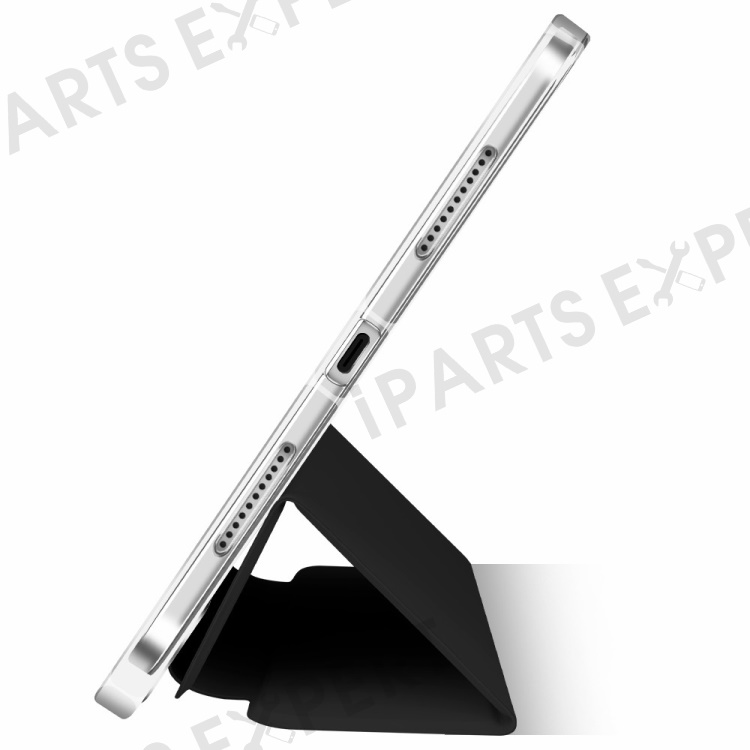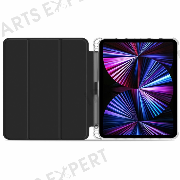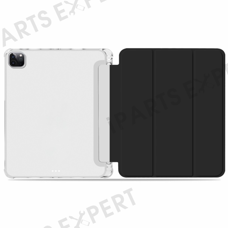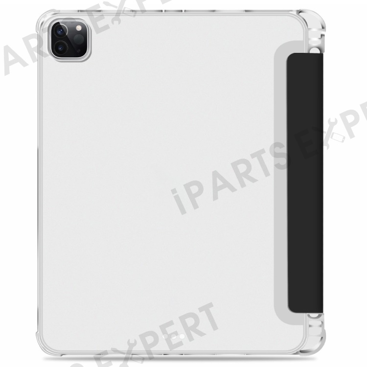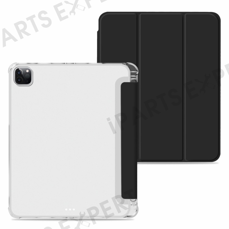 Transparent TPU + PU Leather Auto Wake/Sleep Tablet Cover Tri-fold Case Shell with Pen Slot for iPad Pro 11-inch (2021) - Black