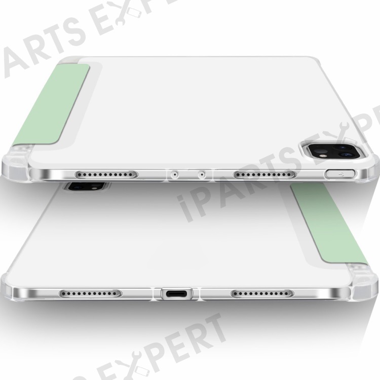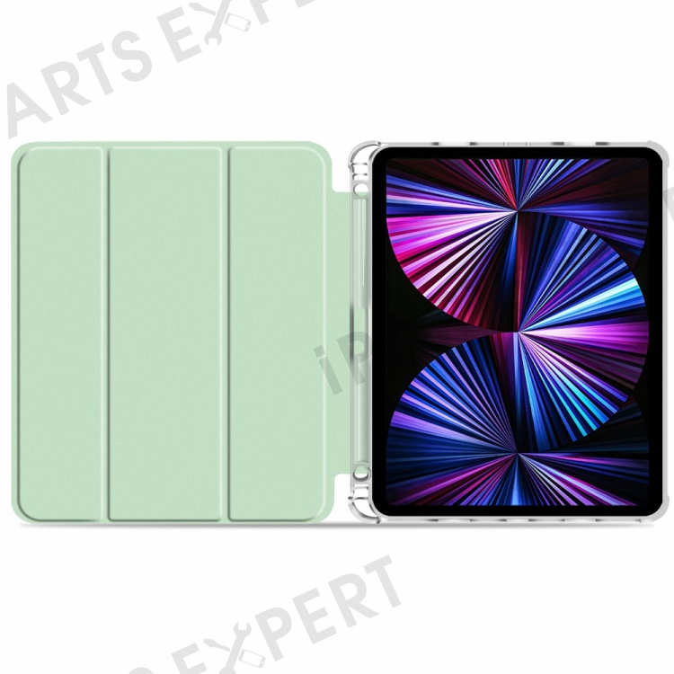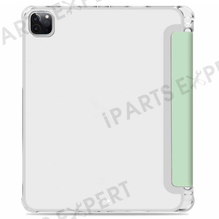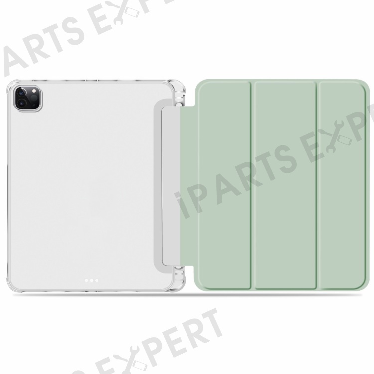 Transparent TPU + PU Leather Auto Wake/Sleep Tablet Cover Tri-fold Case Shell with Pen Slot for iPad Pro 11-inch (2021) - Green