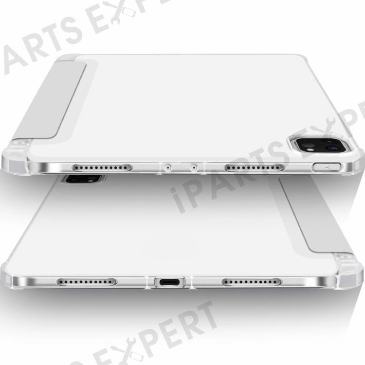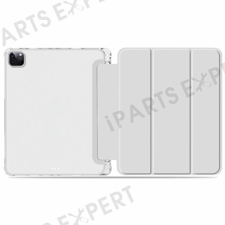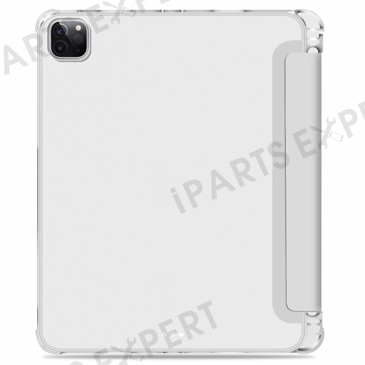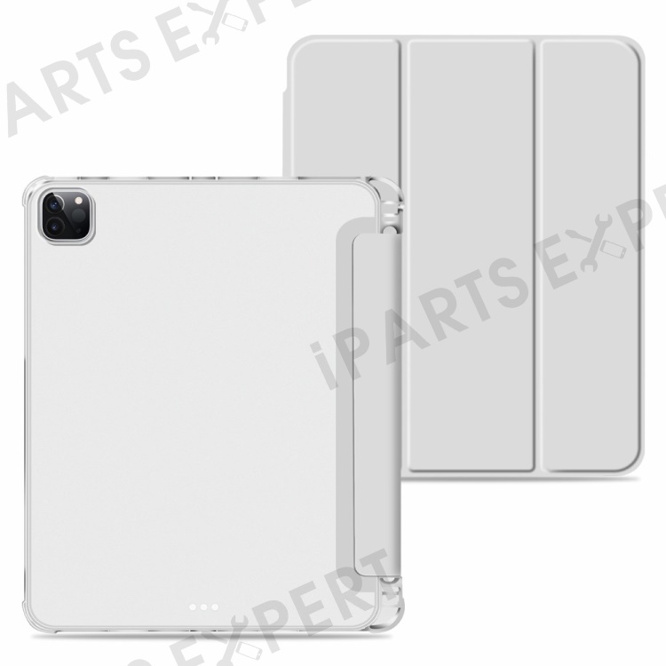 Transparent TPU + PU Leather Auto Wake/Sleep Tablet Cover Tri-fold Case Shell with Pen Slot for iPad Pro 11-inch (2021) - Light Grey