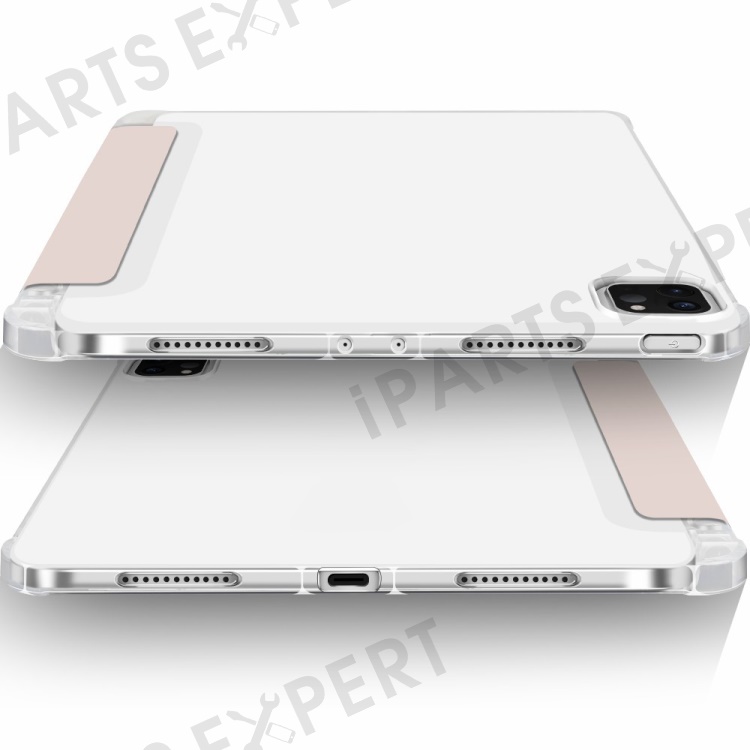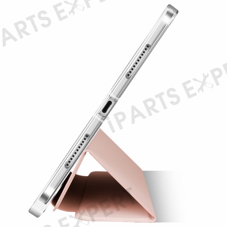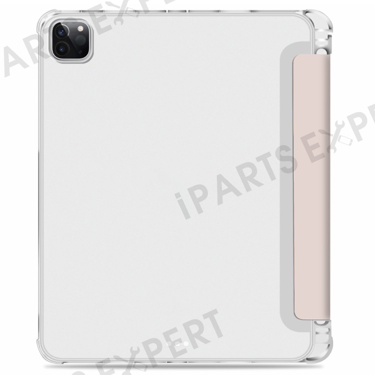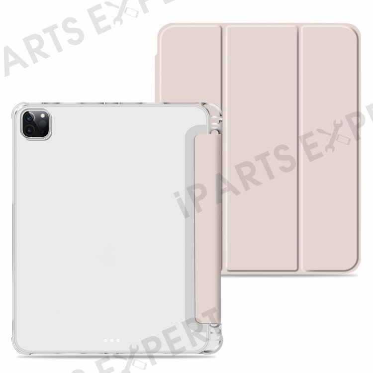 Transparent TPU + PU Leather Auto Wake/Sleep Tablet Cover Tri-fold Case Shell with Pen Slot for iPad Pro 11-inch (2021) - Pink