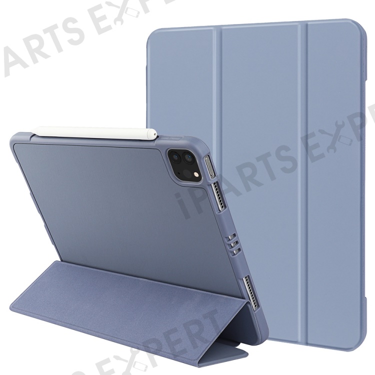 Tri-fold Soft Silicone + TPU Stand Smart Auto Sleep / Wake Cover with Pencil Holder for iPad Pro 11 (2022) / (2021) / (2020) / (2018) - Blue