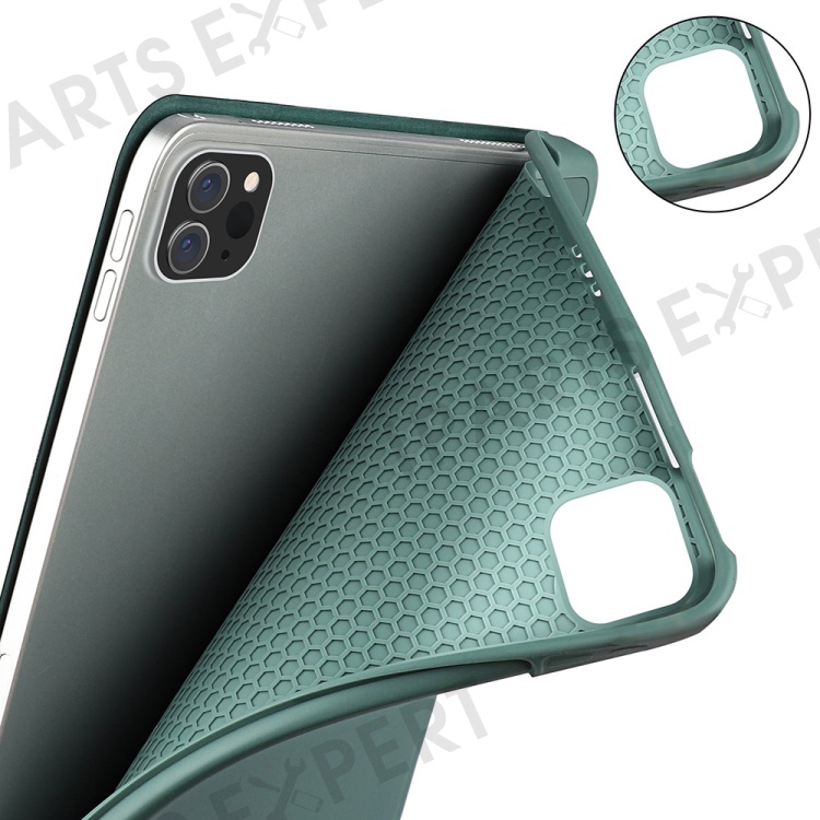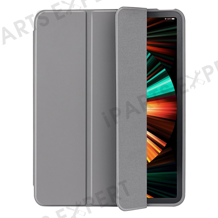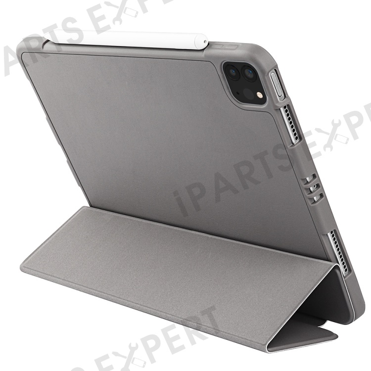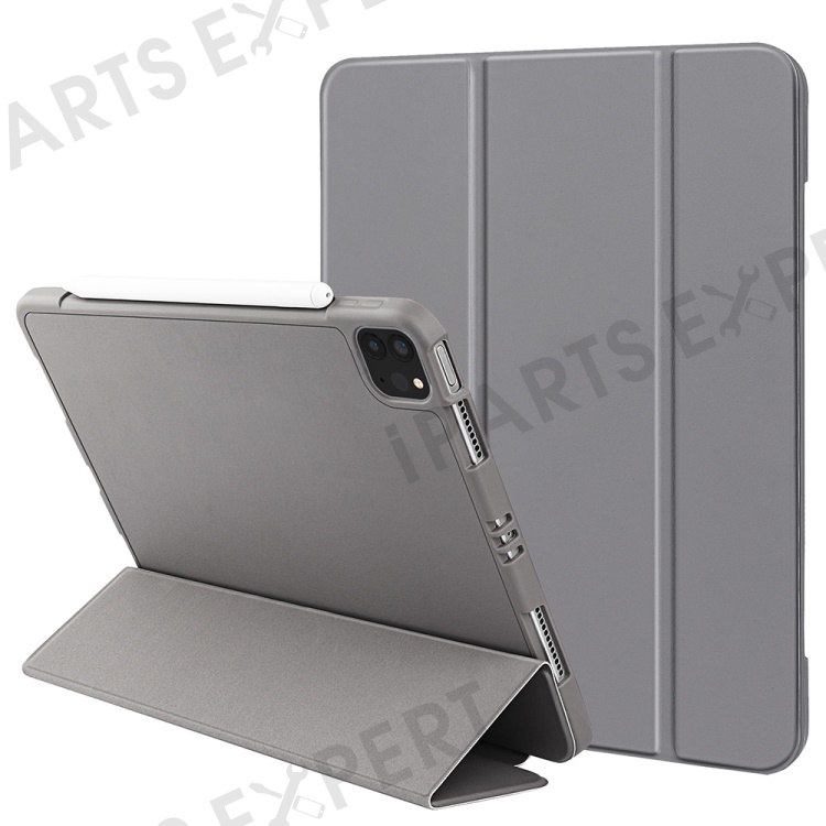 Tri-fold Soft Silicone + TPU Stand Smart Auto Sleep / Wake Cover with Pencil Holder for iPad Pro 11 (2022) / (2021) / (2020) / (2018) - Grey