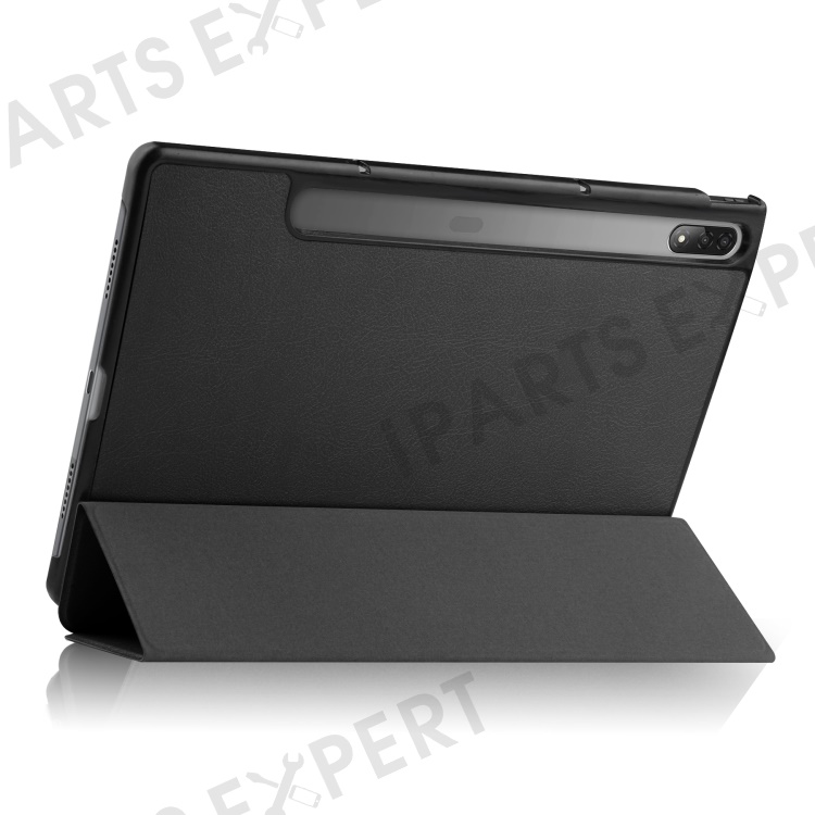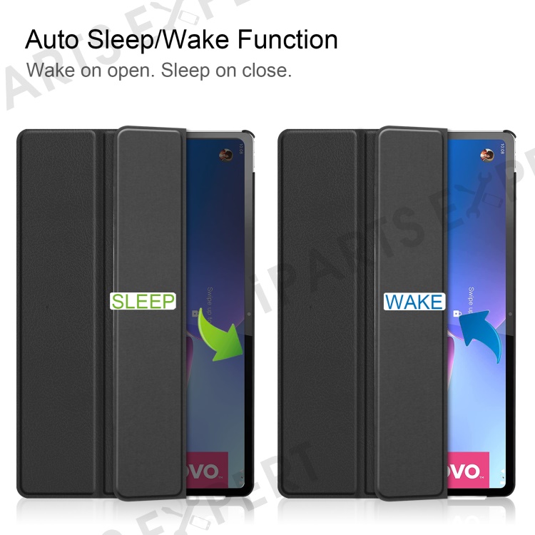 Trifold Stand Tablet Cover for Lenovo Tab P12 Pro, PU Leather + PC Protective Auto Wake/Sleep Smart Case - Black