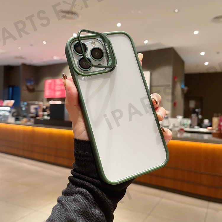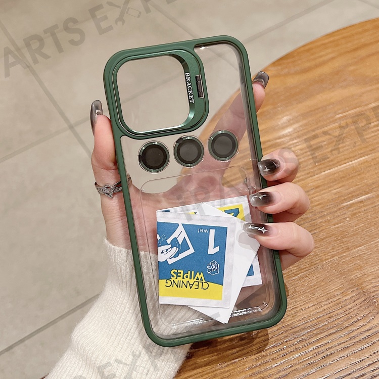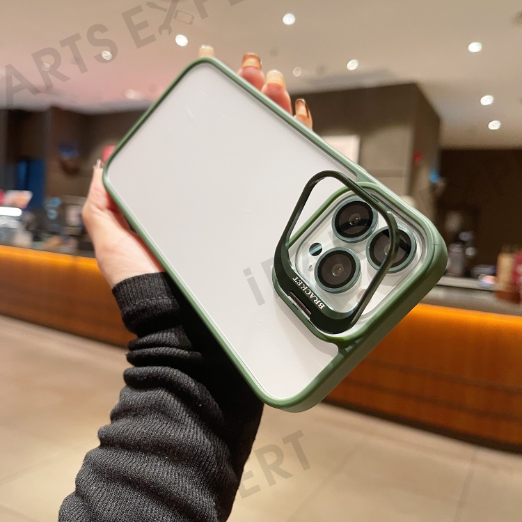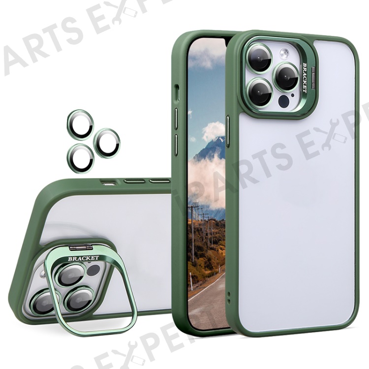U1 For iPhone 14 Pro Max Case Built-In Glass Lens Film TPU+Acrylic Kickstand Phone Cover - Green