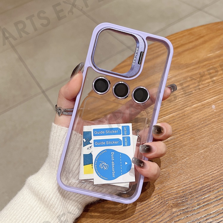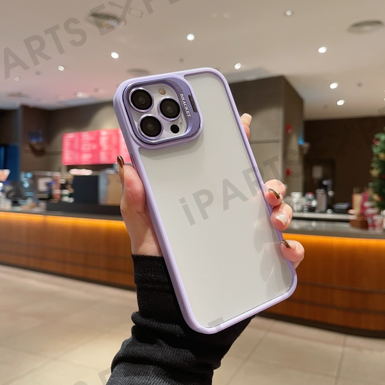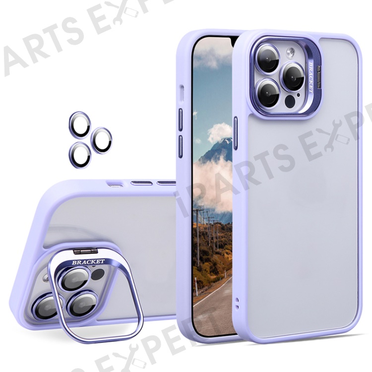 U1 For iPhone 14 Pro Max Case Built-In Glass Lens Film TPU+Acrylic Kickstand Phone Cover - Purple