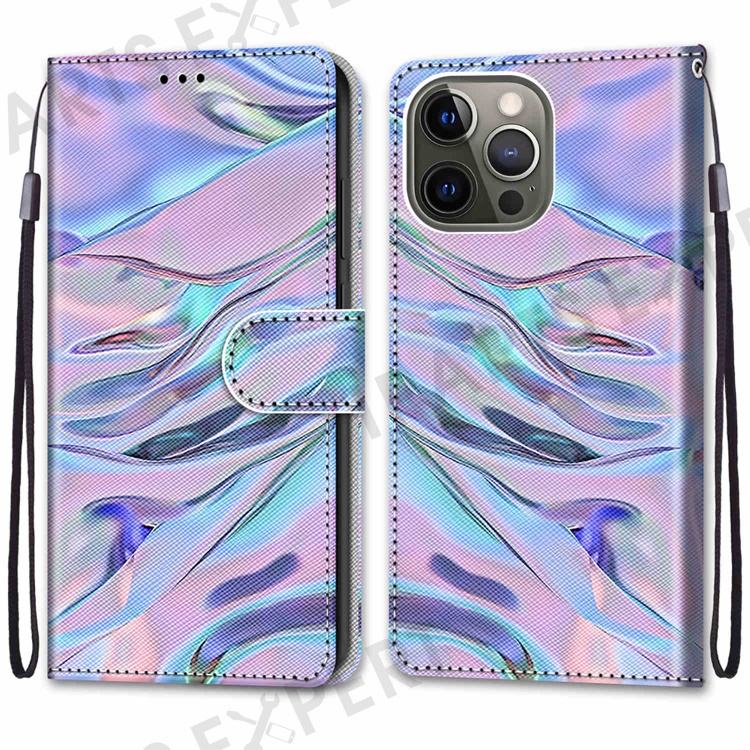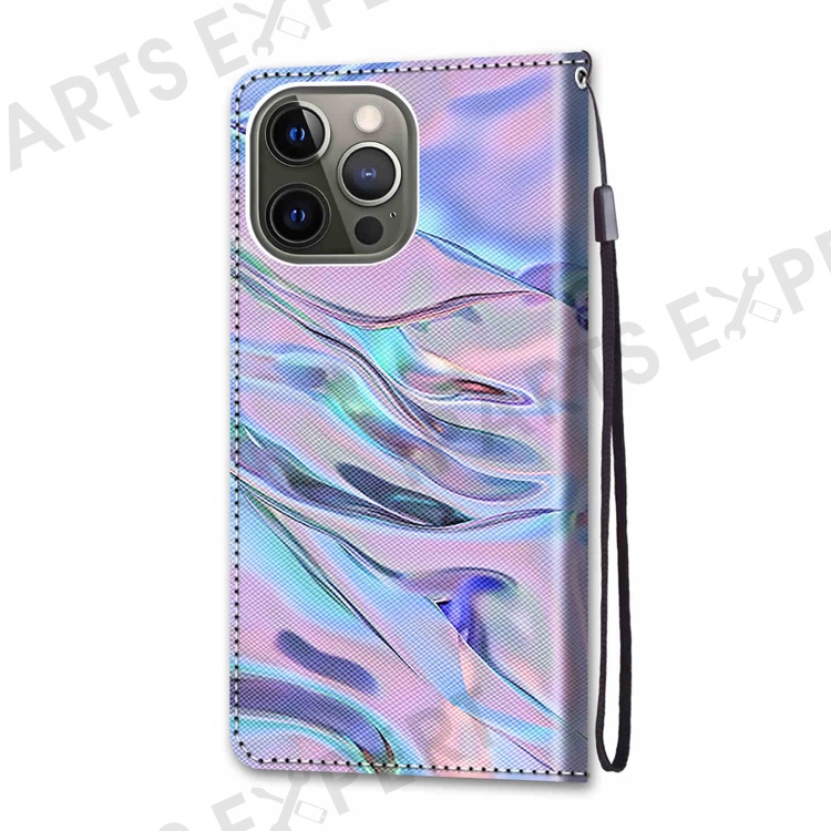 Unique Pattern Printing All-Inclusive Leather Cover Wallet Phone Case with Foldable Stand and Handy Strap for iPhone 13 Pro Max 6.7 inch - Water Wave