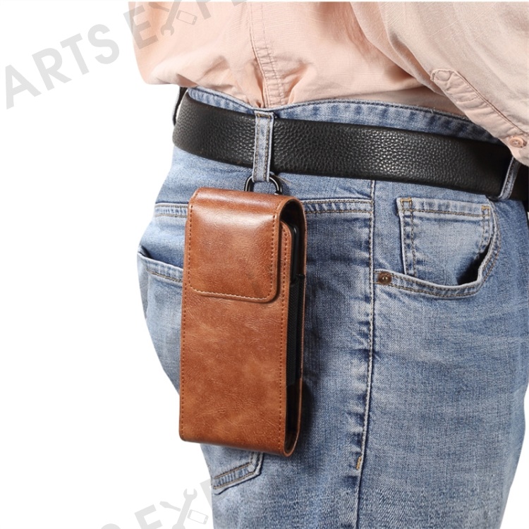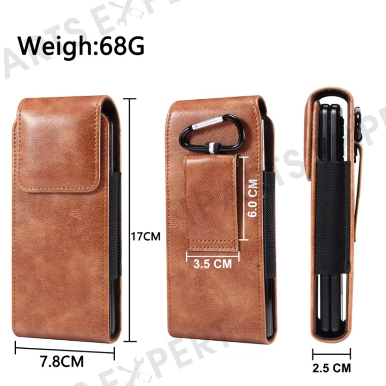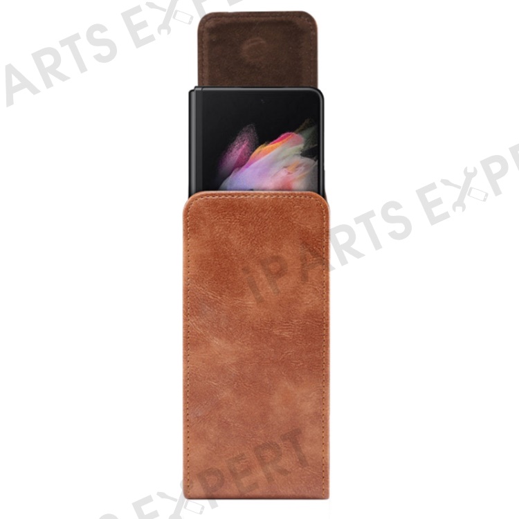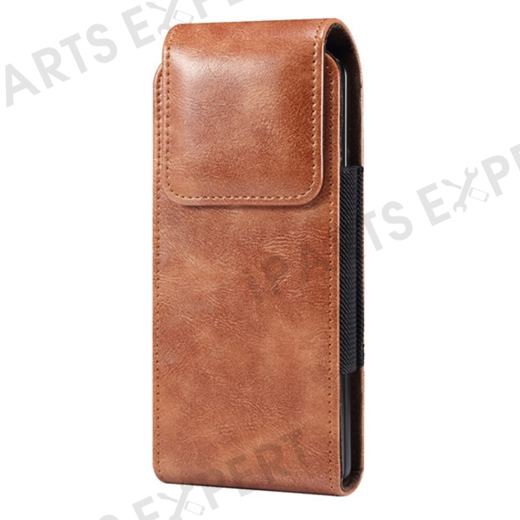 Vertical Flip PU Leather Cell Phone Waist Bag Belt Loop Pouch for Folding Phones, Size L: 170*78*25mm - Brown