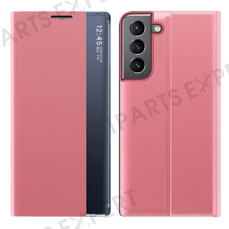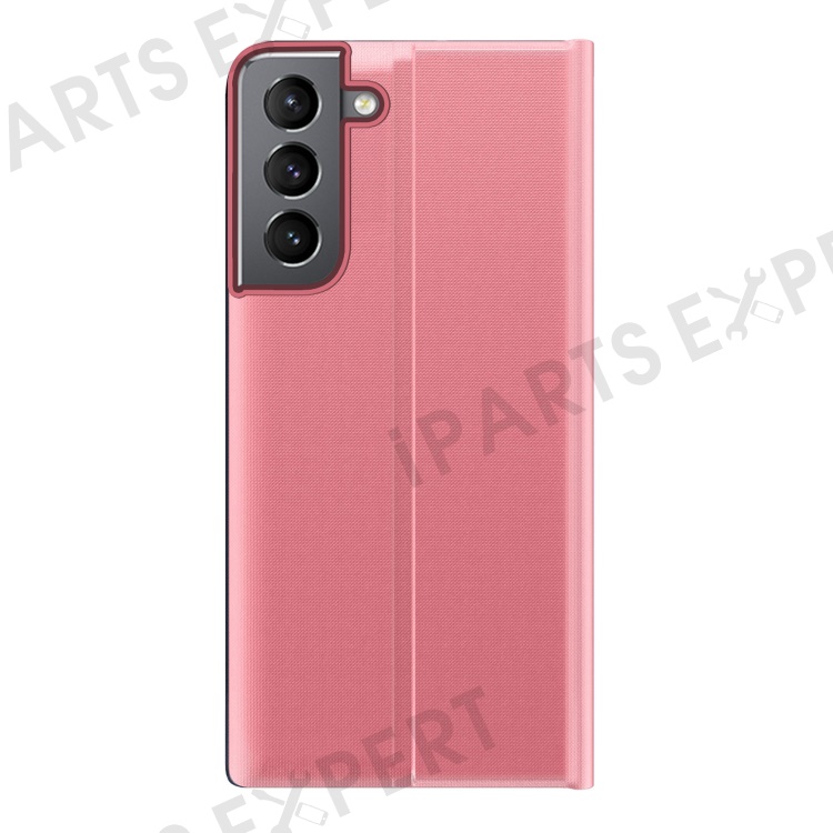 For Samsung Galaxy S22+ 5G View Window Anti-Fall Case PU Leather Auto-Absorbed Stand Phone Cover - Pink