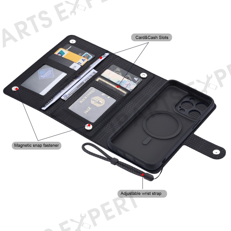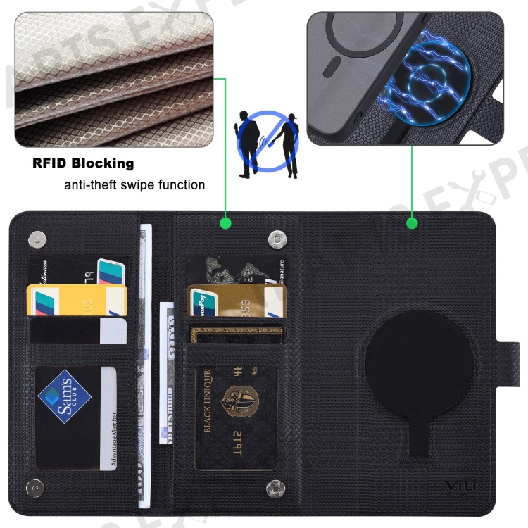 VILI GHA Series For iPhone 14 Pro Max Cell Phone Case RFID Blocking Wallet Cover Compatible with MagSafe - Black