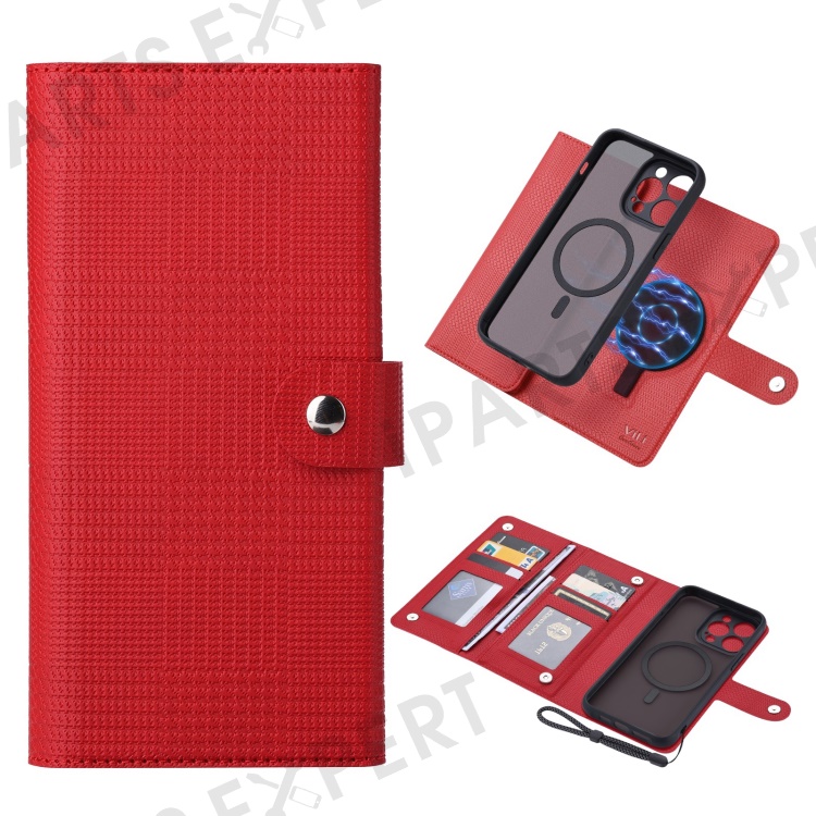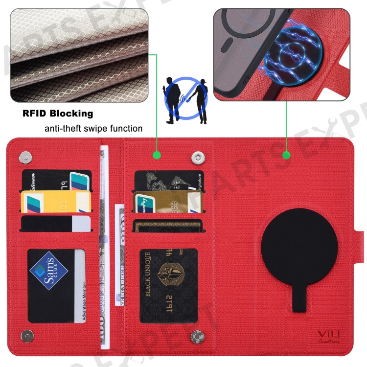 VILI GHA Series For iPhone 14 Pro Max Cell Phone Case RFID Blocking Wallet Cover Compatible with MagSafe - Red