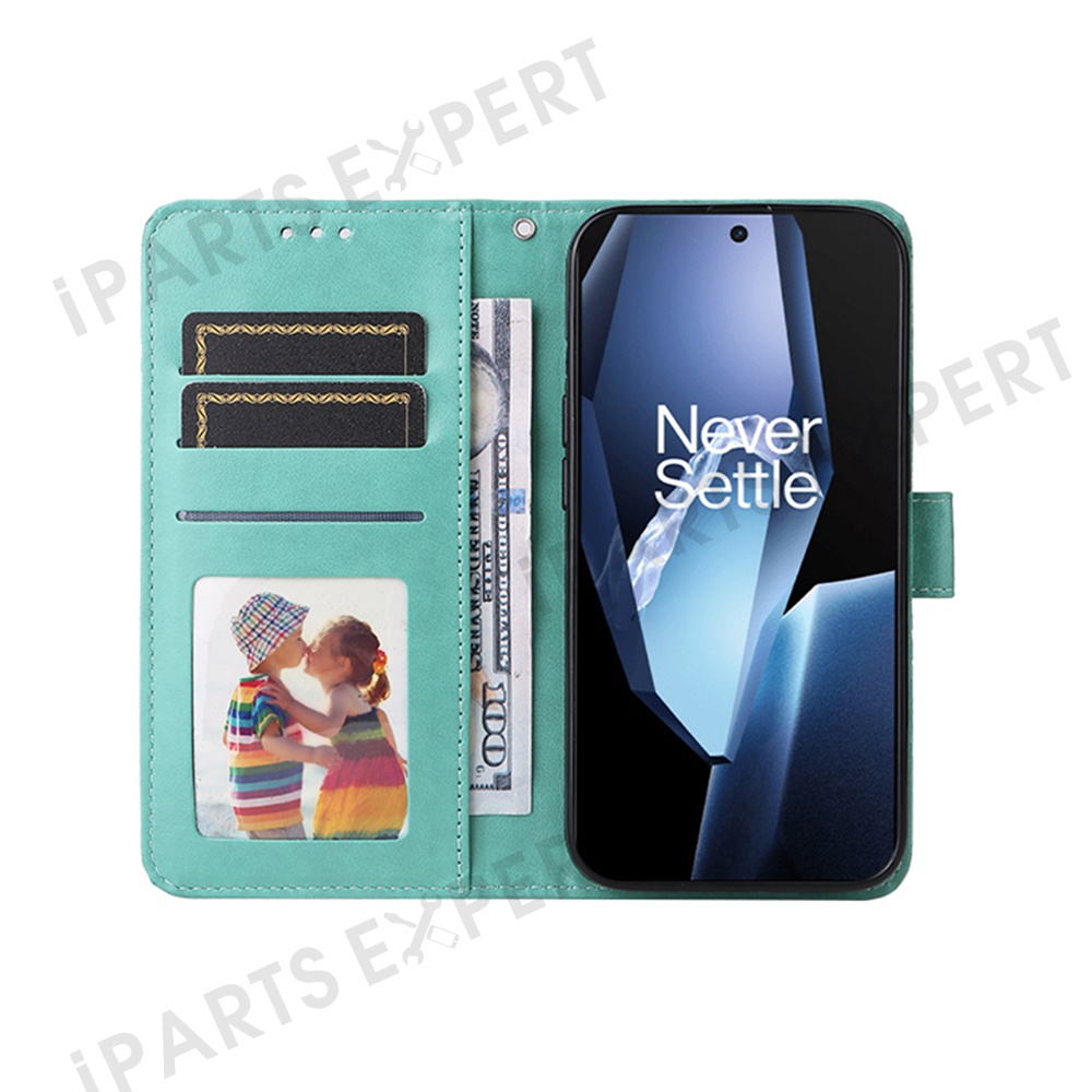 Wallet Case for OnePlus 13R 5G / Ace 5 5G / Ace 5 Pro 5G Leather Phone Cover Sunflower Imprint - Green
