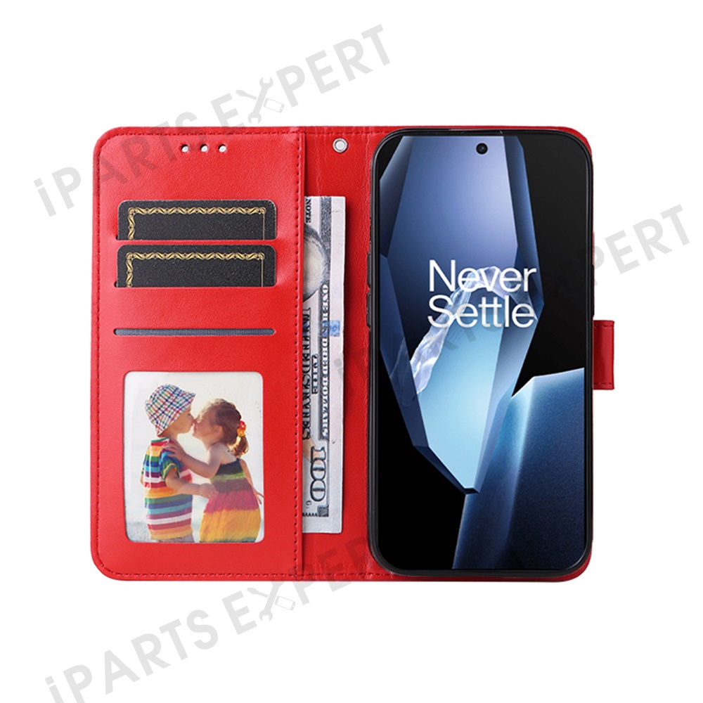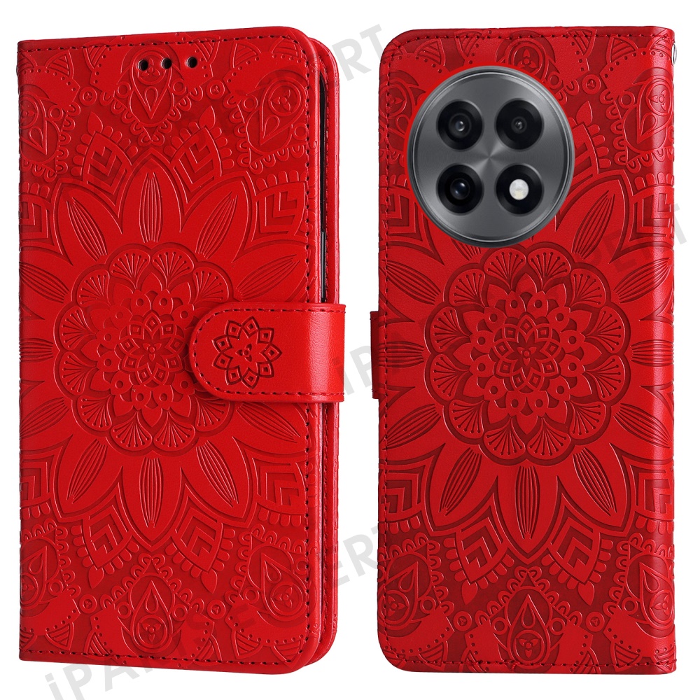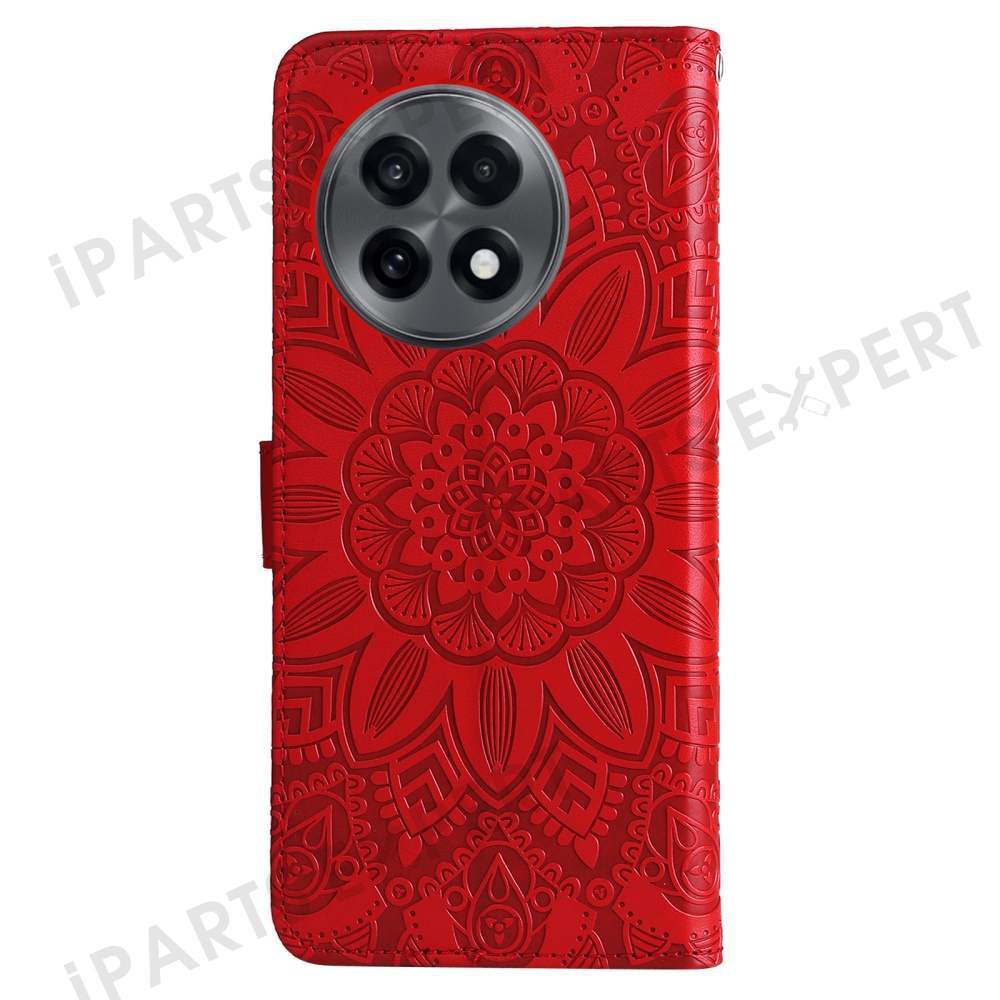 Wallet Case for OnePlus 13R 5G / Ace 5 5G / Ace 5 Pro 5G Leather Phone Cover Sunflower Imprint - Red