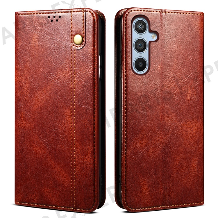 Wallet Case for Samsung Galaxy A25 5G (Global) (161.0 x 76.5 x 8.3mm) PU Leather Phone Shell Waxy Crazy Horse Texture Stand Cover - Brown