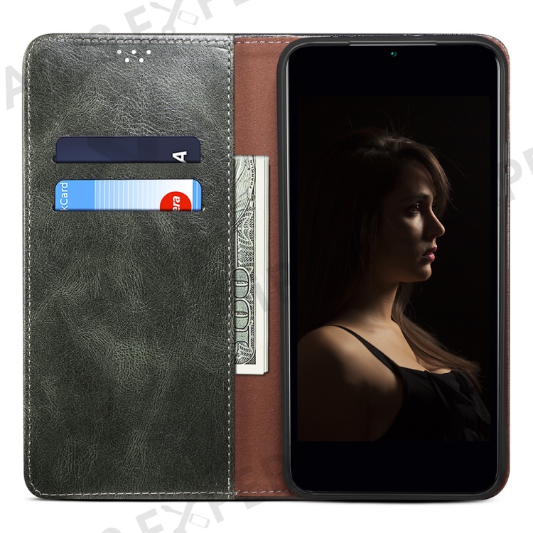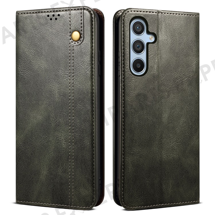 Wallet Case for Samsung Galaxy A25 5G (Global) (161.0 x 76.5 x 8.3mm) PU Leather Phone Shell Waxy Crazy Horse Texture Stand Cover - Green