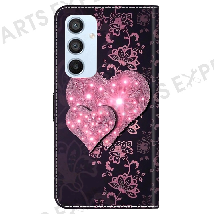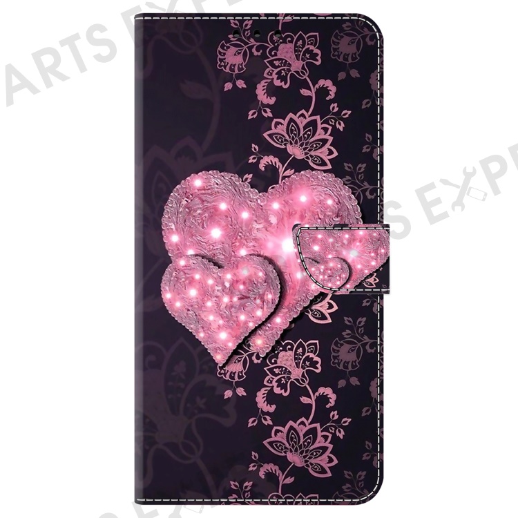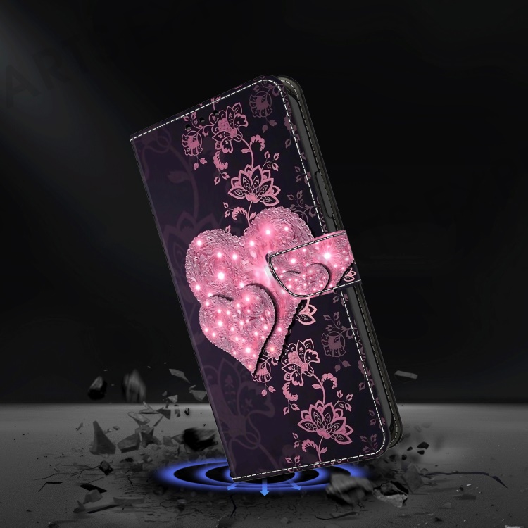 Wallet Case for Samsung Galaxy A54 5G , PU Leather 3D Pattern Printed Stand Protective Phone Cover - Lace Hearts