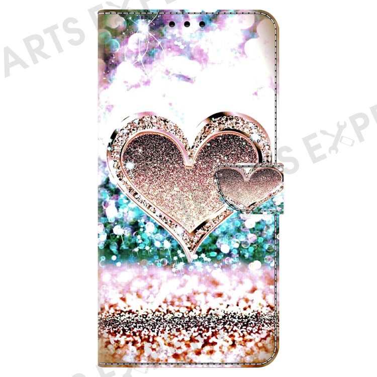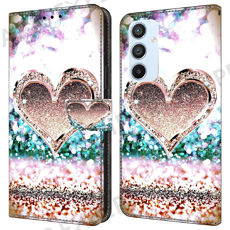 Wallet Case for Samsung Galaxy A54 5G , PU Leather 3D Pattern Printed Stand Protective Phone Cover - Pink Diamond Heart